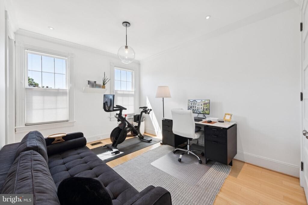 Welcome to 21 V St NE, a thoughtfully updated 4 bedroom, 3.5 bath home that seamlessly blends contemporary design with timeless character. Step inside to an open, light-filled layout featuring gleaming hardwood floors, recessed lighting, and quality finishes throughout. The main level offers a functional and stylish flow, perfect for everyday living and entertaining. Upstairs, the spacious primary suite includes a private bath with heated floors and generous closet space. Two additional bedrooms and a well-appointed hall bath, also with heated floors, complete the level, with both front-facing bedrooms outfitted with motorized blackout shades for effortless comfort at the touch of a button. The fully finished lower level adds versatility, featuring a living area, fourth bedroom, full bath, and laundry room, ideal for a variety of living arrangements or uses. Enjoy the outdoors in your private backyard oasis, with outdoor furniture included, along with the added convenience of two off street parking spaces. Ideally located near public transit, local parks, and a variety of shopping and dining options, this move-in ready property offers both convenience and style. Additional highlights include two Samsung Frame TVs (located in the main living room and lower-level media room), as well as outdoor patio furniture, which will convey with the home. Available starting October 15th. Tenants pay electricity, water, gas, and internet (all utilities).