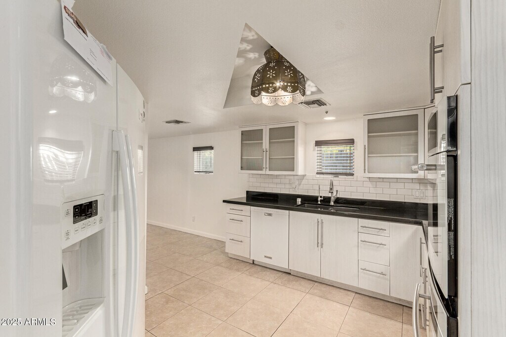 Discover this beautifully updated townhouse in Phoenix's sought-after Central Corridorjust one block from premier dining,shopping,the light rail,and scenic bike paths. Nestled in a quiet 6-unit community with a recently updated pool,this home offers both privacy and convenience,just minutes from downtown Phoenix,SR-51,Sky Harbor Airport,and stunning mountain parks. Step inside to soaring 18-foot ceilings and dramatic floor-to-ceiling windows that flood the living space with natural light. The private outdoor patio is perfect for entertaining,complete with a built-in grill and a mature shade tree. The bright kitchen features sleek modern appliances and striking black granite countertopsan ideal balance of style and function. New AC unit installed w/ 10 yr warranty!