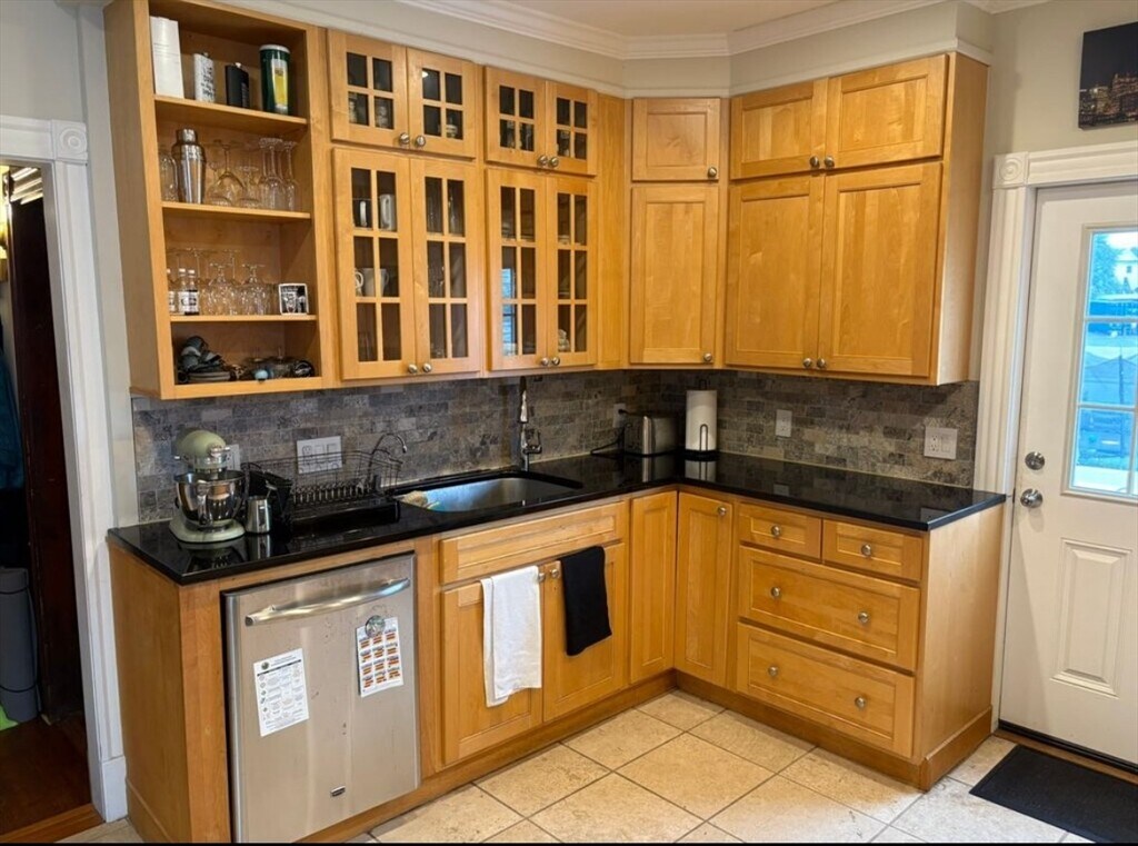 Spacious and beautifully appointed 3 bedroom,1 bath first floor apartment offering over 2,000 square feet of living space in the heart of Norwood.This sun filled home features 10 foot ceilings,hardwood floors,recessed lighting,and a finished basement with bonus third bedroom and additional storage. The open kitchen is equipped with stone tile,granite countertops,high end appliances including a Sub Zero refrigerator,island range,double oven,instant hot water,and stainless steel dishwasher. Enjoy a modern ceramic tile bath,large mudroom and office area,in unit laundry,and abundant storage throughout. Outdoor living includes a front porch,side porch,and private rear deck overlooking a large fenced yard. Gas heat,hot water,and cooking with updated systems. Off street parking for up to four cars. Seconds away from Norwood Depot commuter rail,shops,and town center. Close to highway and perfect for commuters. MLS# 73477480