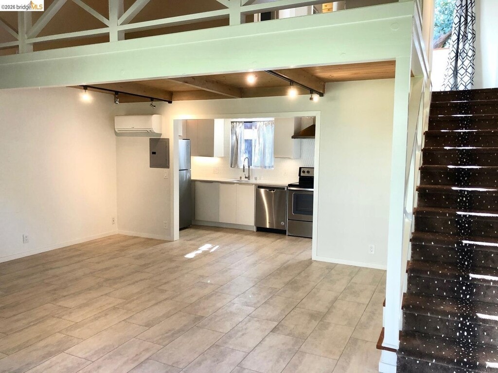 Charming A-frame 1 loft bedroom townhouse-style apartment in a serene and ideally located Menlo Park fourplex. This unique unit features high ceilings,updated appliances,and remote-controlled heating and air conditioning for year-round comfort. Enjoy your own private patio,along with a shared front lawn perfect for relaxing,spring picnics,or casual outdoor activities. Conveniently located within walking distance to Burgess Park and close to restaurants,banking,grocery stores,a movie theater,and more. Rent includes water,garbage,sewer,and gardener. One assigned carport space (tandem parking for two cars) and a storage locker are included. Fireplace is decorative only.
