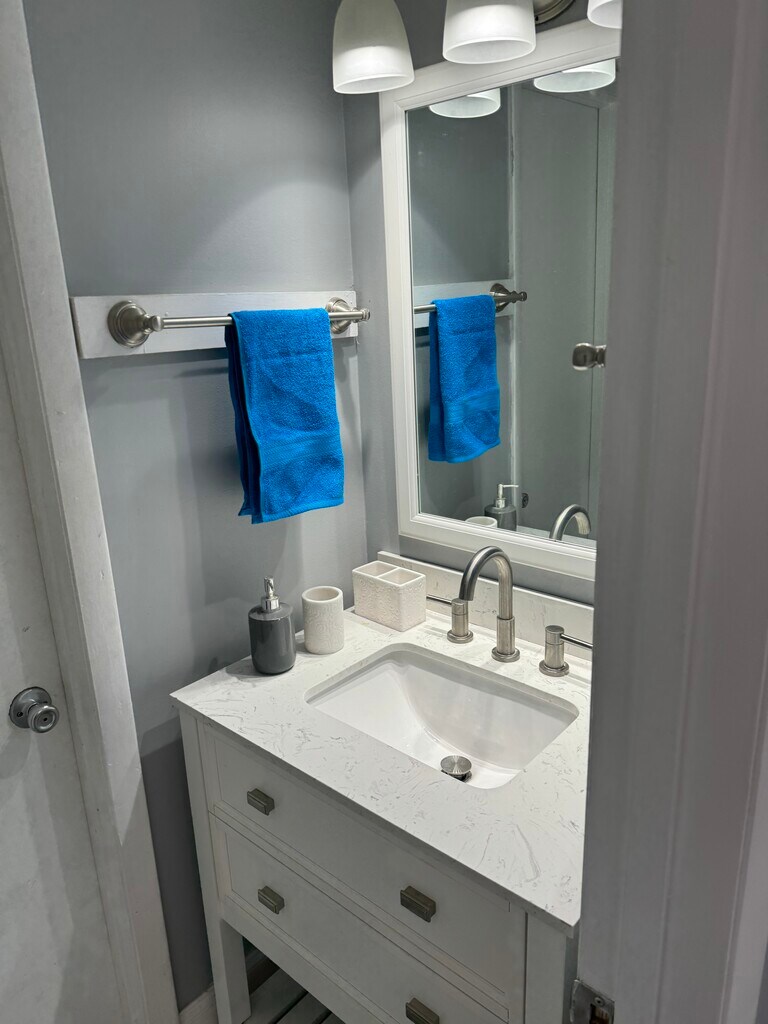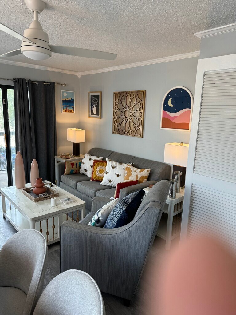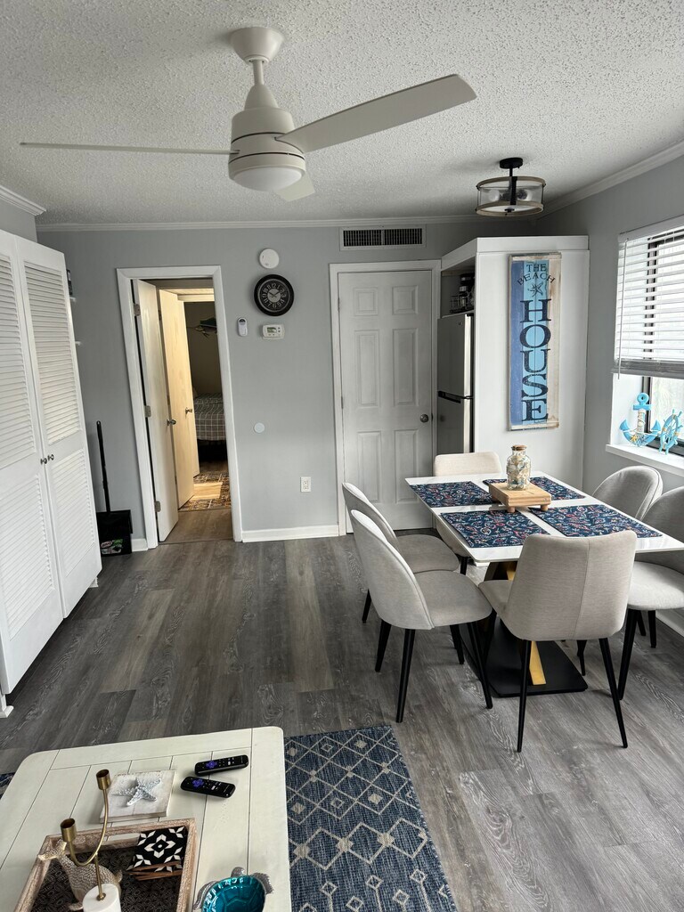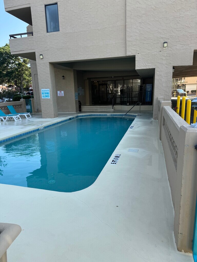 Fully Furnished 1 bedroom 1.5 bath condo in elevated building 1 block from ocean. Swimming pool, laundry room in building. Unit is 1 level up from lobby.