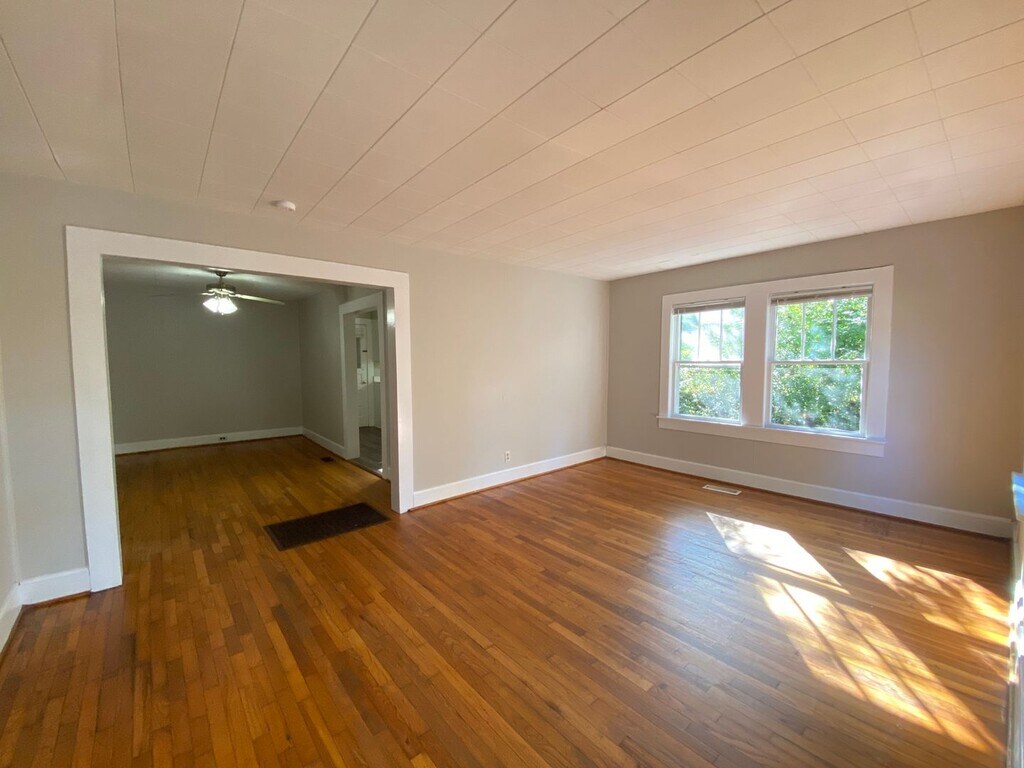 Single level, 2 bedroom, 1 bath home featuring kitchen with range and fridge, dining room, living room, and laundry room. Additional features include hardwood floors, fresh paint, partially fenced back yard, and carport. Central gas heat and central AC. No Section 8. No pets over 35 lbs.