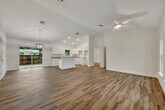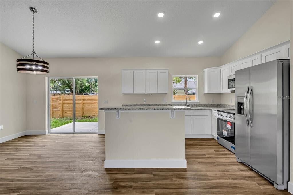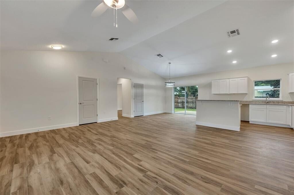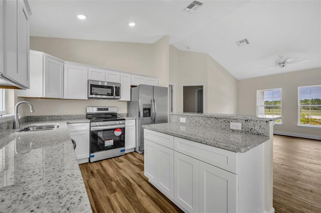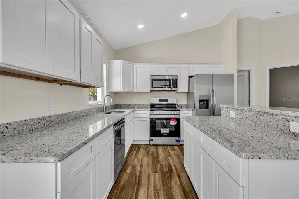Be the first to live in this newly built home on a .32-acre corner lot. Offering 1,300 sq. ft. of living space,this property features three bedrooms,two bathrooms,and a two-car garage.The open floor plan includes vaulted ceilings in the main living area and a split bedroom design. The kitchen is equipped with granite countertops,a center island,pantry,and dining nook. Both bathrooms feature tiled tub walls to the ceiling,and the home has tile flooring throughout with accented interior doors. Additional conveniences include an interior laundry room,energy-efficient Low-E windows,and sliding doors leading to a concrete patio. Located just one mile from De Leon Springs State Park and less than 20 minutes from Downtown DeLand. Beaches including Daytona,Ormond,and New Smyrna are all within an hour’s drive. Available now! MLS# V4945268
