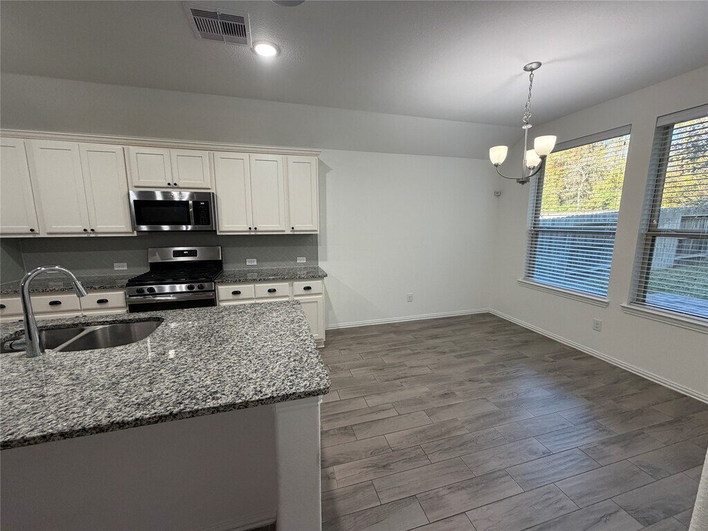 Great new flooring in Primary Suite,Ready! !Light and Bright Open Concept,lots of up grades after built,beautiful light fixtures,flooring,wood wall for the modern touch and built in,(remains) Awesome floor-plan functional yet modern and practical for the family. Formal Dining and open living room that connects to the great granite island in the kitchen,breakfast room complements this section of the house. Very spacious Primary Bedroom and functional Primary bath with separate shower and tub. And yes there is a covered and New extended paver area! Patio and and extra large back yard! MLS# 95414347