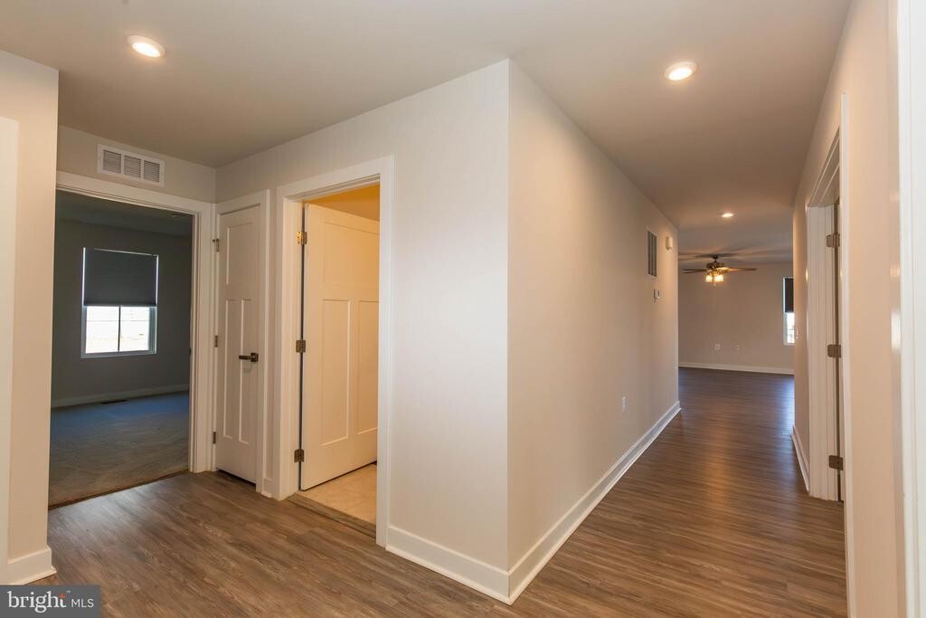 Enjoy main level living in this beautiful home in the Cardinal Pointe Community, Hedgesville, WV! You are welcomed by durable, stylish LVP flooring that flows through a bright, open-concept floor plan with living room, office/flex space room with french doors, laundry room, gourmet kitchen with stainless steel appliances and large island, and dining area with direct access to the deck and fully fenced backyard—ideal for relaxing or entertaining. The carpeted primary suite features a walk-in closet and full bath with dual vanity; and the two additional carpeted bedrooms and additional full bath provide space for both family and guests. This home is completed by a two-car garage with bump-out storage area, and unfinished basement ready for your home gym or additional storage.