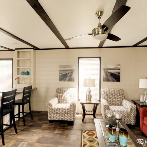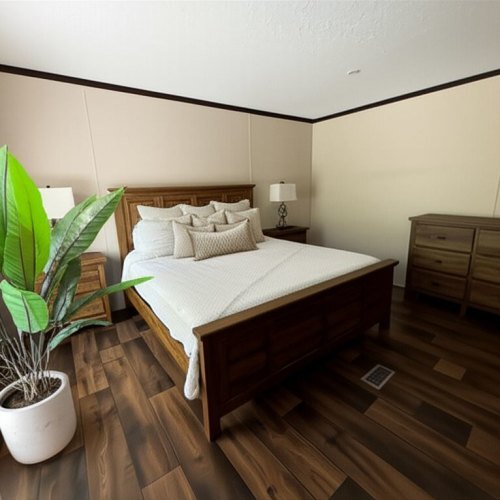 If you purchase this home, you will receive 4 months free site rent with a 16 month site rental agreement with a full deposit. Plus, NO APPLICATION FEES! If you rent this home, receive 1 month FREE RENT on a 13 month lease with a full deposit! Hurry, offers expire November 30th. This beautifully designed manufactured home offers a perfect balance of style, comfort, and functionality. The open-concept floor plan flows seamlessly from the kitchen into the dining and living areas, creating an inviting space for everyday living and entertaining. The kitchen is a highlight, featuring sleek cabinetry, modern appliances, a stylish range hood, and plenty of counter space for meal prep. The dining area is filled with natural light, making it an ideal spot for family meals or hosting guests. The living room provides a warm and welcoming atmosphere with space for multiple seating arrangements, while the bedrooms are thoughtfully designed with comfort in mind. Guest rooms are versatile and bright, perfect for family, visitors, or even a home office. The primary suite offers a private retreat with a spacious layout and an en suite bathroom featuring dual sinks, modern finishes, and a full tub/shower combination. A dedicated utility area with washer and dryer connections adds everyday convenience. From its fresh finishes to its practical layout, this home is move-in ready and designed for today's lifestyle. Disclaimer: Photos are staged to represent layout and features. Furnishings, décor, and accessories are not included.
