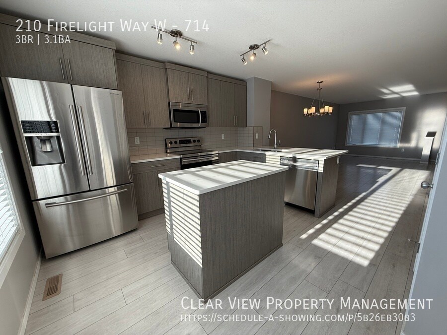This bright and spacious 3-bedroom, 3.5-bathroom townhouse offers modern living in a highly desirable location backing onto a peaceful greenspace. The main floor features an open-concept layout filled with natural light, along with a large kitchen complete with an island, stone countertops, and plenty of storage—perfect for cooking or entertaining. Upstairs, you’ll find three well-sized bedrooms and two full bathrooms, including a comfortable primary suite. The finished basement adds even more living space with another full bathroom, a cozy secondary living area, and a generously sized fourth bedroom ideal for guests or older children. Additional features include air conditioning for year-round comfort and two dedicated parking stalls for added convenience. This is a fantastic home for anyone seeking space, comfort, and a great location. ?? Schedule a viewing here: Lease Details: ?? 6 month lease only ?? Security deposit is equal to one month’s rent ??? Tenant insurance is required ?? Utilities are not included =?? Got a pet? Small pets may be welcome with a $50/month pet fee (per pet) All residents are automatically enrolled in our Tenant Benefit Package, which includes: ?? Easy-to-use online portal for rent payments and repair requests ?? Furnace filter delivery every six months (if needed) ?? 24/7 maintenance support for peace of mind ?? Free e-payments each month ?? One lockout service included every six months A quick rental application is required, and we’ll reach out to your references before final approval. Ready to apply? — Click here to start your application: