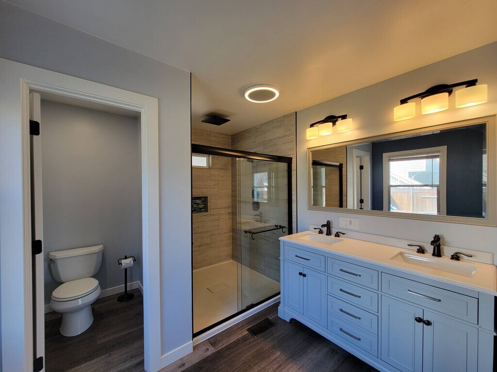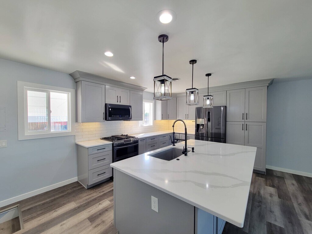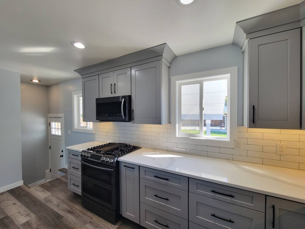 New Remodel Rental with Huge Pool This fully remodeled duplex combines modern finishes, spacious living areas, and an incredible backyard designed for relaxation and entertainment. Featuring durable LVP flooring throughout and no carpet, this home is both stylish and easy to maintain. The main floor master suite includes a huge custom-tiled shower with independently controlled dual shower heads plus an overhead rain shower, a double sink vanity, private toilet room, and a closet with built-in shelving. Also on the main floor are a convenient guest half bath, a bright living room with a large picture window, and a fully updated kitchen. The kitchen showcases granite countertops, tiled backsplash, under-cabinet lighting, slide-out drawers, and a huge island with double sink, dishwasher, bar seating, and additional storage. A gas range, built-in microwave, upgraded refrigerator, and all kitchen appliances are included in the rent. Two windows overlook the backyard and pool area. The basement level offers a large second living area, two bedrooms (one featuring LED light strips with independent controls), a 3/4 bathroom with step-in shower, and a laundry room with oversized sink and stackable washer and dryer hookups (washer and dryer not included). The backyard is the highlight of this duplex, featuring a huge covered patio with lighting and electricity, basketball court with hoop, built-in fire pit, large dog kennel, storage shed, and an in-ground pool with diving board. Concrete and lawn areas with in-ground sprinklers provide plenty of room for recreation. Off-street parking is available behind the duplex with gated access to the backyard. Rental Details: Fully fenced backyard Tenants responsible for all utilities, landscaping, and propane tank refills, along with pool maintenance Pets considered upon owner approval with additional rent and/or fees One-time admin fee of $150 due at lease signing Only available through KeyOne Property Management. Contact KeyOne Property Management to schedule your showing today.!