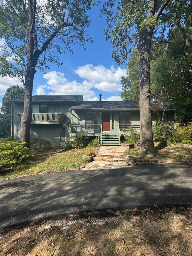 Location, Location, Location!! Neighborhood is 5 minutes from Interstate 49, major shopping, restaurants and entertainment. Freshly updated Midcentury Modern Lakehouse. 3 minutes to Lake Fayetteville Nature Center and trails. Split level 4 BD, 2.5 BA with 2 car garage and circle drive. Private acre lot with mature trees. 3 decks. Wood fireplace. Stained glass windows. Upstairs has new carpet. Large Master Bedroom has private bathroom, jacuzzi tub, sitting area, large closet and deck. Second bedroom and hallway full bath. Main level has living room with fireplace, kitchen, bedroom/office, dining on beautiful hardwood floors. Downstairs has bedroom, half bath and large laundry room with washer and dryer. Ready to move in now.