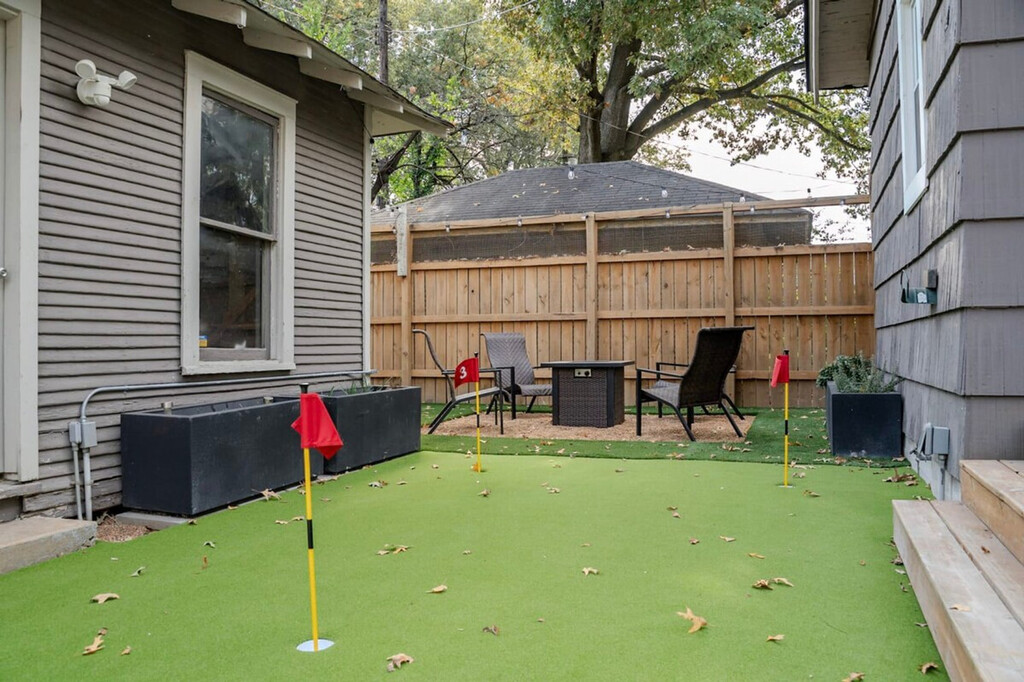 This luxury historic home in the heart of Memphis offers everything you need for a fun escape to the Rock n' Roll city. Located just 3.5 miles from Beale Street and seconds from grocery stores, this newly renovated property as of October 2023 features five bedrooms and three and a half bathrooms, comfortably accommodating up to 12 guests. Enjoy the convenience of driveway parking and outdoor seating with a comfy sectional couch. Welcome to your home away from home! The main spaces of this property include five bedrooms and three and a half bathrooms. The chef’s kitchen is fully stocked with high-end appliances, a large refrigerator, ample cabinetry, and a large island with high seating. The living room boasts a 50" smart TV, plush sofa, modernized lamps, and ample plush seating, all within an open floor concept directing to the kitchen and dining area. The basement includes a washer and dryer, while the game room offers arcade games and a shuffleboard table. We are pet-friendly, allowing up to two dogs for $125 per stay. Enjoy outdoor amenities such as a BBQ grill, a fire pit, a fully fenced yard, and a professionally installed putt-putt green. Uber and Lyft are reliable modes of transportation in the area, making it easy to explore Memphis and its attractions. The primary guest must be at least 21 years of age to book this property. There is a strict no-parties policy, and violating this rule is grounds for termination. The guest count at the house must be 12 max at any point in time, including daytime guests. A simple screening process is required within 48 hours of booking confirmation, and a rental agreement must be signed prior to check-in. A non-refundable $60 damage waiver is required, covering accidental damage during your stay, provided it is reported before check-out. [SI]