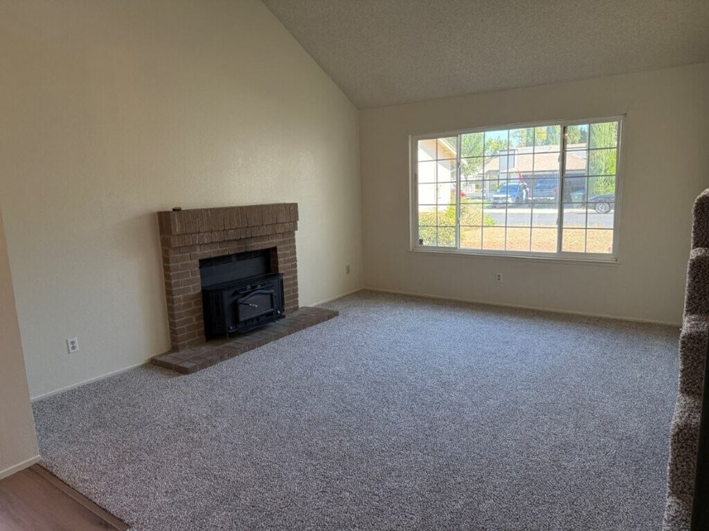 - Updated 4 Bedroom 2.5 Bath 1,760 Sq. Ft. 2 Story - Court Location w/ Large Driveway and 2 Car Garage - Updated w/ New Paint, New Flooring, and New HVAC System - Gated Entry into Front Courtyard - Entry Features: Security Screen Door, LVP Flooring - Living Room Features: Vaulted Ceiling, New Carpet, New Paint, Dual Pane Window, Brick Fireplace w/ Stove Insert - Formal Dining Room Features: New Paint, New Carpet, Dual Pane Window, Chandelier - Kitchen Features: New Paint, New Vinyl Plank Flooring, Electric Range w/ Hood, Double Sink w/ Pull Out Sprayer - Family Room Features: New Paint, New Vinyl Plank Flooring, Dual Pane Slider to Backyard - Stairs/Upstairs Hallway Feature: New Paint, New Carpet, Stairs w/ Metal Banisters and Wood Rails, Cabinetry - All Guest Bedrooms Feature: New Flooring, New Paint, Dual Pane Windows, Closets - Upstairs Hall Bath Features: New Vinyl Floors, New Paint, New Toilet, Tiled Shower Over Tub Setup w/ Pull Out Sprayer - Large Master Bedroom Features: New Paint, New Carpet, Dual Pane Window - Master Bath Features: Outside Vanity, Separate Toilet and Shower Room, Walk-In Shower, New Vinyl Floors, Walk-In Closet w/ Built-In Racks - 1/2 Bath Downstairs Features: New Paint, Tile Floors, Newer Toilet and Vanity - Downstairs Indoor Laundry Room Features: New Paint, New Vinyl Floors, Gas or Electric Dryer Hookup, Cabinetry - Garage Features: 2 Car Spaces, Lighting - Backyard Features: Stamped Concrete, Paver Patio, Overhang, Huge Trees - Pets Negotiable
