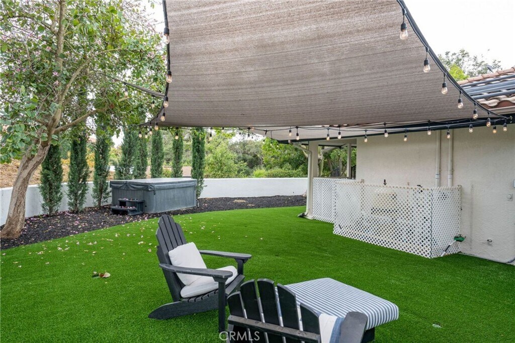 This beautifully upgraded ranch style home is the one you have been waiting for! Engineered wood floors, wood burning fireplace, and exposed wood beam ceilings lend to its warm and inviting vibe. An open concept highly functional floorplan is perfect for entertaining, working from home or simply spending time with family. Upgrades include engineered wood floors, quartz countertops, Viking built in refrigerator and Viking built in freezer, newly installed dishwasher, Restoration Hardware lighting, surround sound, farm sink, ceiling fans, wood barn doors and more! Master suite boasts fireplace, upgraded walk-in shower and separate soaking tub as well as sliding doors opening to the pool area. Spacious secondary bedrooms are joined with Jack and Jill baths. Protected/covered in-ground salt water pool, above ground spa, miniature golf course, outdoor sitting area with turf is the perfect venue for entertaining or simply decompressing! Glamping style ADU is a bonus! The garage has built in cabinetry, epoxy flooring, niche for workshop or gym and EV charger in garage. Home is nestled on an amazing gated and fully fenced 3+Acre lot with mini vineyard and over 60 fruit producing trees, including avocado, apple, lemon, grapefruit, orange, pears and other varieties. Enjoy taking in sunsets and beautiful westerly views from the pergola. The single car shed just inside the gate is perfect for additional storage and ranch equipment. This home is situated just a few minutes from town and from the 15 freeway. Its location affords all the conveniences of suburban living without compromising your rural lifestyle!