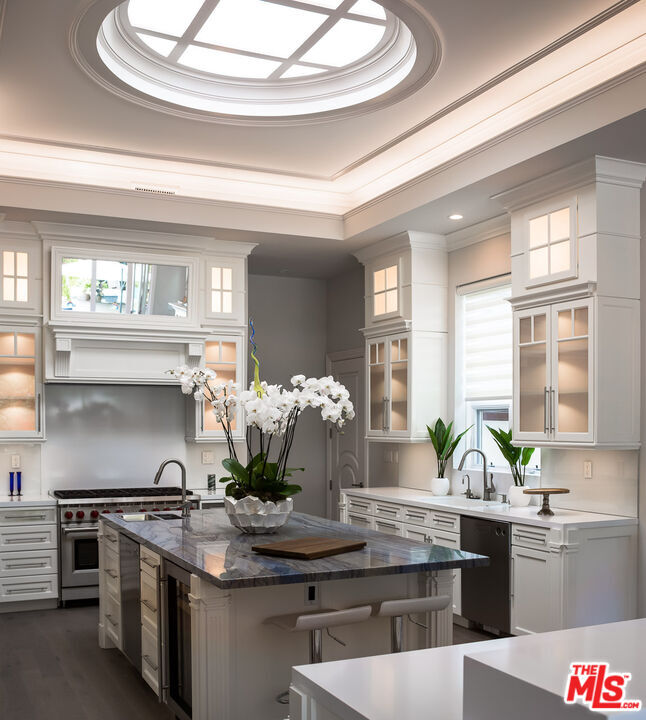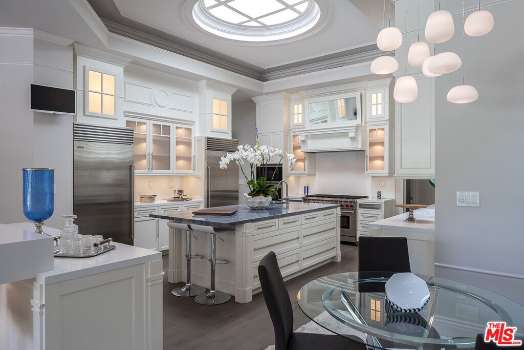 Single story 5 bedroom 5 bathroom home on one of the largest lots on Westgate Ave in the heart of Brentwood. This home has a great open floor plane with wonderful Indoor - outdoor flow. The formal entry flows seamlessly into the living areas and immediately exposes the yard and pool. The incredible kitchen has stainless steel appliances, a center island, a bar counter and an eat-in area. The home features wood floors, Recessed 14 ft high ceilings with cove lighting, paneled Walls an abundance of Large windows and smart home automation. The extensive use of skylights throughout the home infuses it with natural light and provides for an airy relaxed interior while accordion doors give way to an expansive back yard with outdoor kitchen, fire-pit and Infinity edge pool. MLS# 25624653