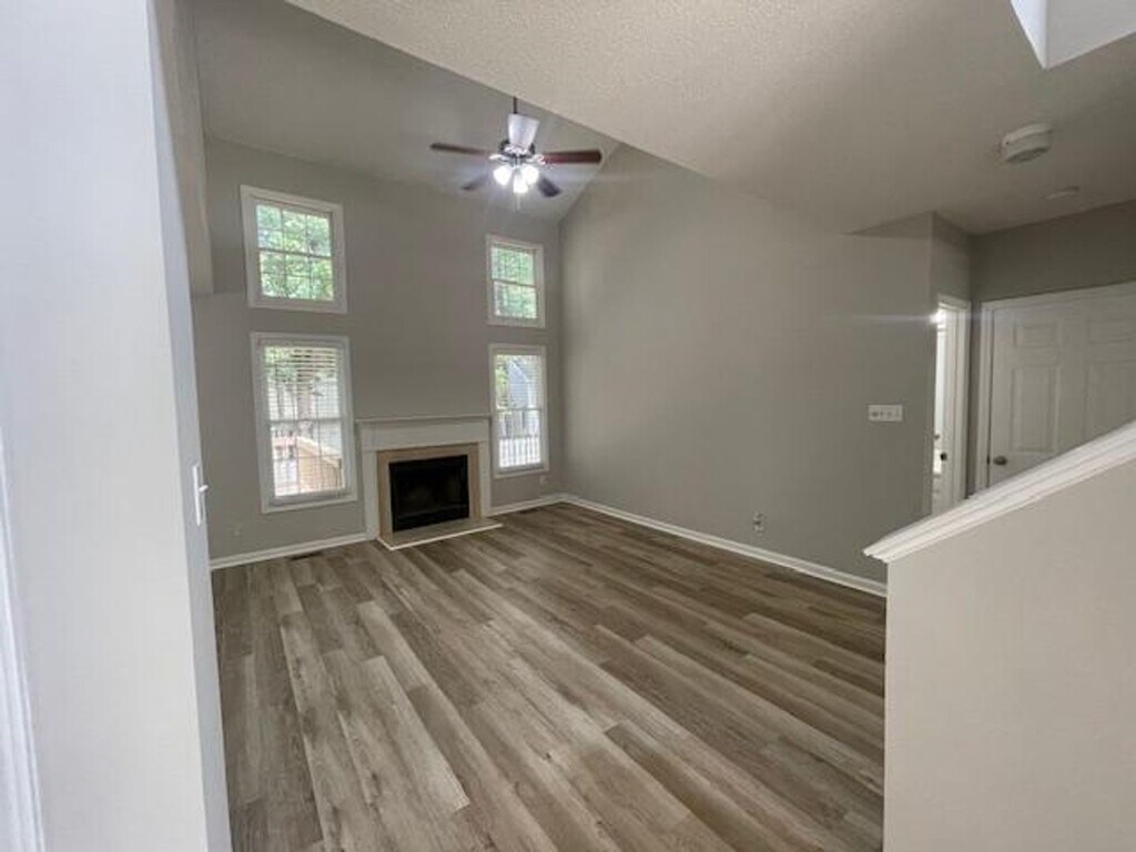 Popular Park Village! Beautiful home with open flowing floor plan. All new carpets, paint, LVP flooring throughout. New appliances! spacious kitchen open to dining and back beck view. 2 story family room with lots of windows make this home bright and inviting. Gas fireplace. Vaulted 2nd floor primary bedroom, with large walk in closet, full bath, double sinks. Other bedrooms are spacious. Walk in laundry room with new washer/dryer. Great amenities, pool, playground, greenway. Short stroll to the pool just across street. one car garage with extra storage area.