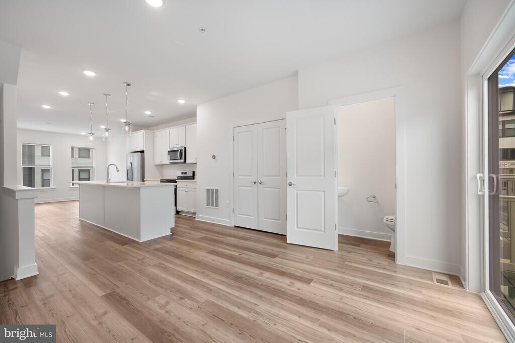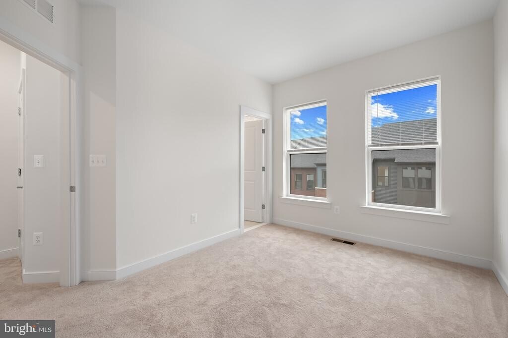 Contemporary townhouse for rent in the sought-after Watershed community, offering 1,563 square feet with 3 bedrooms, 3 full baths, 1 half bath, and a 1-car attached garage. The finished entry level provides flexibility with a full bath and a versatile space ideal for a fourth bedroom, guest suite, or home office. The open-concept main level features a dining area with access to a balcony, a stylish half bath, a gourmet kitchen, and a spacious sunlit living room. The kitchen is designed to impress with a center island and breakfast bar seating, stainless steel appliances, designer quartz countertops, and modern pendant lighting. The upstairs luxurious owner’s suite includes plush carpeting, two walk-in closets, and a spa-inspired bath with a dual-sink vanity and a shower accented with ceiling-high tile and a built-in bench. The second bedroom also offers a private en suite bath and a walk-in closet. A convenient laundry closet is located in the upper hallway. Outdoor living is elevated with a beautiful deck, perfect for entertaining or relaxing. Residents of Watershed enjoy access to exceptional amenities, including a clubhouse, dog park, fitness center, scenic paths, picnic areas, a community pool, and multiple playgrounds. Conveniently located just minutes from Fort Meade, MD-32, Arundel Mills, shopping, dining, and more.