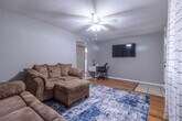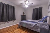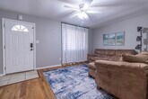 Mid term fully furnished rental available for immediate occupancy. Lease term to be 2+ months. $1,650 security deposit and $250 cleaning fee. No pets. Lawn care,utilities and internet included. 3 bed,2 bath ranch style home with covered front porch and covered patio. 2 bedrooms have queen beds,3rd bedroom has twin bed. Hall bathroom has a jetted tub/shower combination. All bedrooms have closets,chest of drawers,night stands,lamps with charging stations,and room darkening curtains. Living room has Roku smart TV that you can log onto your own subscription services. Living room also has desk area w/light and charging station for laptop work.