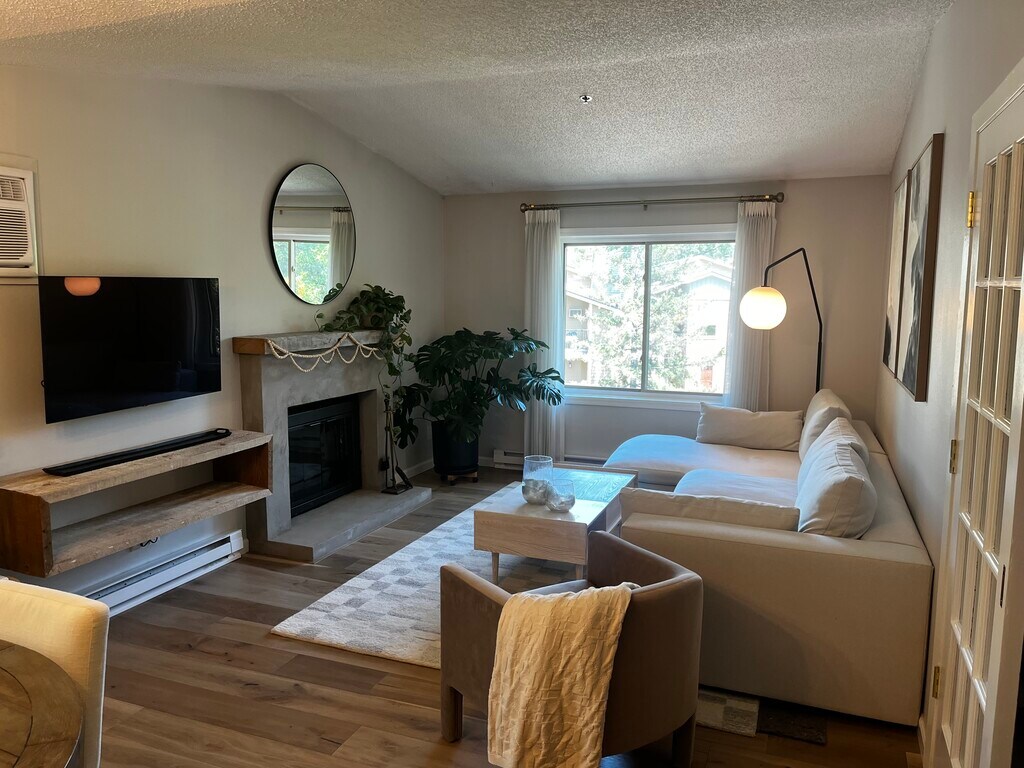 Welcome home to this beautifully updated nearly 1,100 square foot 2 bedroom, 1.5 bathroom condo offering the perfect blend of comfort, style, and convenience. Located near the heart of the West End and Greenway Bike Trail, and just minutes from downtown Minneapolis and top restaurants, shopping & entertainment, this home offers the ideal blend of quiet retreat and city access. Perfectly suited for a young professional seeking space, convenience, and elevated finishes. Step inside to find gorgeous hardwood floors, a fully updated kitchen with all new stainless steel appliances, and a warm, real wood-burning fireplace — perfect for cozy Minnesota winters. The open dining area flows onto a private balcony ideal for entertaining, while the primary bedroom features its own second balcony for a quiet morning coffee or evening unwind. Inside you’ll find: • Vaulted ceilings (top-floor unit — no neighbors above you!) • Beautiful white oak hardwood floors throughout • Fully updated kitchen with brand new stainless steel appliances • Real wood-burning fireplace — perfect for cozy evenings and movie nights • In-unit laundry • Two private balconies — one off the dining area for entertaining and a second off the primary bedroom Primary Suite Highlights: • Spacious layout with room for a bed, large dresser, and vanity or desk • Walk-in closet with generous storage • Private balcony access — perfect for morning coffee or fresh air The private single-car garage includes custom-built shelving for organized storage — ideal for bikes, seasonal gear, and extra belongings. Community amenities include three swimming pools and beautifully maintained grounds. Trash/recycling, sewer, lawn care, and pool maintenance are all included in rent — offering low-maintenance living with added convenience. Lease Details: • 12+ month lease preferred • No pets • No smoking This is a rare opportunity to rent a spacious, updated top-floor condo in a prime location with strong amenities and excellent access to downtown. Reach out to schedule a showing!