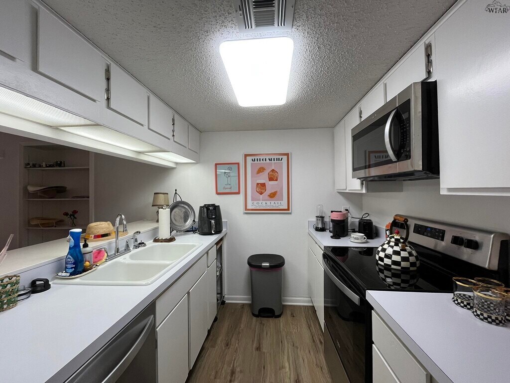 Beautiful 1-bedroom, 1 bath condo in Vantage Point High Rise with TWO balconies! Open floor plan features a living/dining room with balcony access—perfect for hosting. Kitchen has breakfast/serving bar, all appliances, and good cabinet storage. Hall laundry closet includes washer and dryer. Spacious bedroom boasts a walk-in closet and its own private balcony. Hall bath has shower/tub combination, cabinet storage, and vanity. One parking spot included. Tenant pays electric and cable/internet.