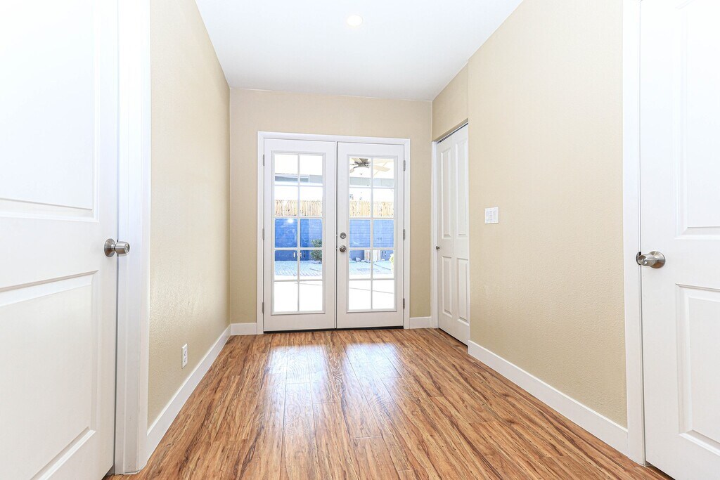 Discover your new home in Paradise Park, located near the Art District and Huntridge. This beautifully remodeled and upgraded property features an open kitchen equipped with granite countertops, stainless steel appliances, skylights, and a breakfast bar. Enjoy solid surface flooring throughout the house, complemented by a cozy wood-burning fireplace in the great room and ceiling fans in every room. The primary bedroom boasts its own fireplace, a spacious walk-in closet, and French doors that lead to a sparkling pool and patio. The front courtyard is enclosed by a gate for added privacy.