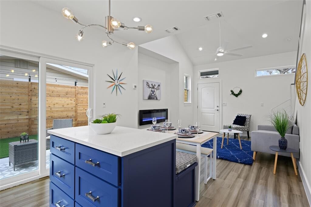 Upscale East Austin living with thoughtful details throughout - available April 1st. Custom built in 2020, this modern standalone luxury residence offers high-end finishes, energy efficiency, and rare upgrades just minutes from downtown, restaurants, bars, pickleball, and 4 blocks from Lady Bird Lake. Bamboo wood flooring, quartz countertops, and custom soft-close shaker cabinetry highlight the designer kitchen featuring premium Samsung appliances and a large island with built-in seating and storage. Spa-inspired baths include double vessel sinks, privacy layout, built-in drawer outlets, and Bluetooth speaker fan. Fully insulated bedrooms provide enhanced privacy for a couple or roommates. Energy-efficient construction includes a standing seam metal roof, Low-E windows, and HVAC system. Insulated garage with 240V/50-amp EV charging and additional locked storage. Gated driveway for two vehicles. Private, fully fenced yard with modern horizontal cedar fencing, xeriscape landscaping, turf, and outdoor lighting on timers. Primary suite balcony. MLS ID 5821322