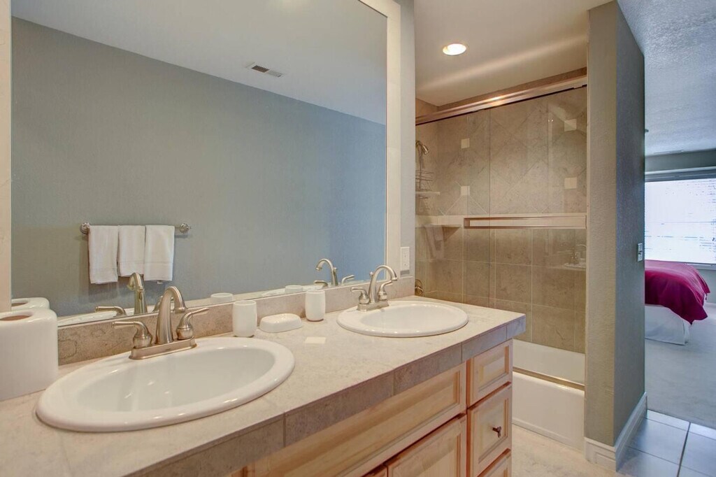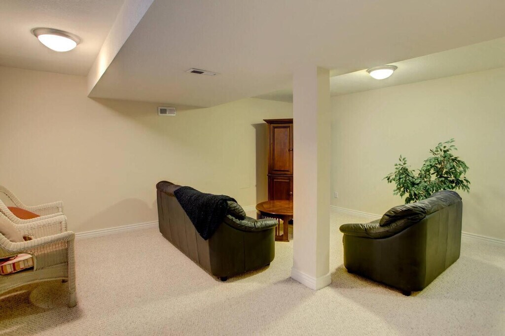 This stunning and spacious unit welcomes you with a blend of carpet and hardwood floors, granite countertops, and stainless steel appliances in the fully equipped kitchen. As you enter, a carpeted staircase guides you upstairs to the master bedroom and bath, the second bedroom, second bath, and the office. Descending into the basement via the carpeted staircase, you'll find an open family room with a small TV and a couple of couches, along with the third bedroom and third bathroom. To make your arrival a little easier, a starter welcome packet is provided, including essentials like toilet paper, bar soap, shampoo, conditioner, paper towels, dishwasher detergent, trash bags, laundry detergent, garbage can liners, and salt and pepper. Any supplies beyond this are up to the guest to replenish as restocking is not provided. Cleaning supplies are not stocked due to safety issues. [SI]
