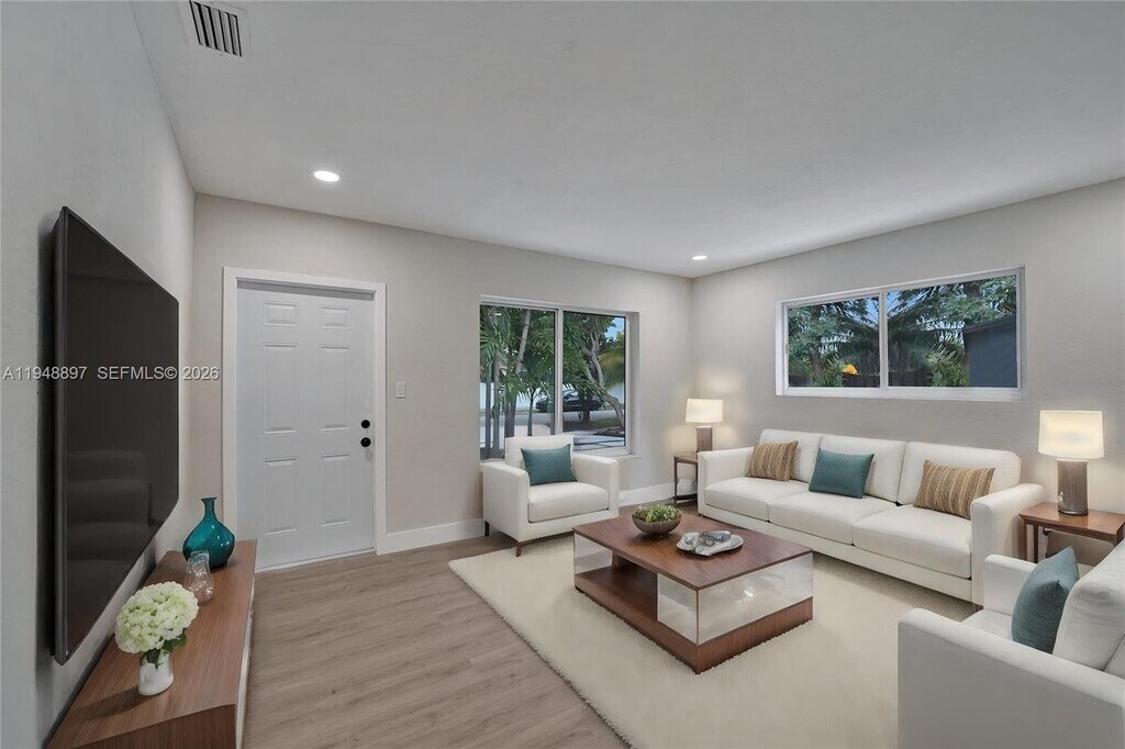 You looking for fresh and clean?! Completely renovated with over $130,000 in luxury finishes! Indulge in a pristine Ives Dairy home with a pool, now available for lease! This never-occupied 3-bed, 2-bath gem offers over 1000 sqft of living space. The Italian gourmet kitchen boasts quartz countertops, soft-closing custom cabinets, and stainless steel appliances. Enjoy new bathrooms with glass showers and vanities, freshly painted interiors, impact windows and doors, and a screened patio for outdoor dining or lounging. The property features a new driveway, a soon-to-be-installed fence, and a newly resurfaced and tiled pool. The large backyard is ideal for entertaining. Rapid approval—don't miss out! Call the listing agent for details. Vacant, move in immediately. MLS # A11948897