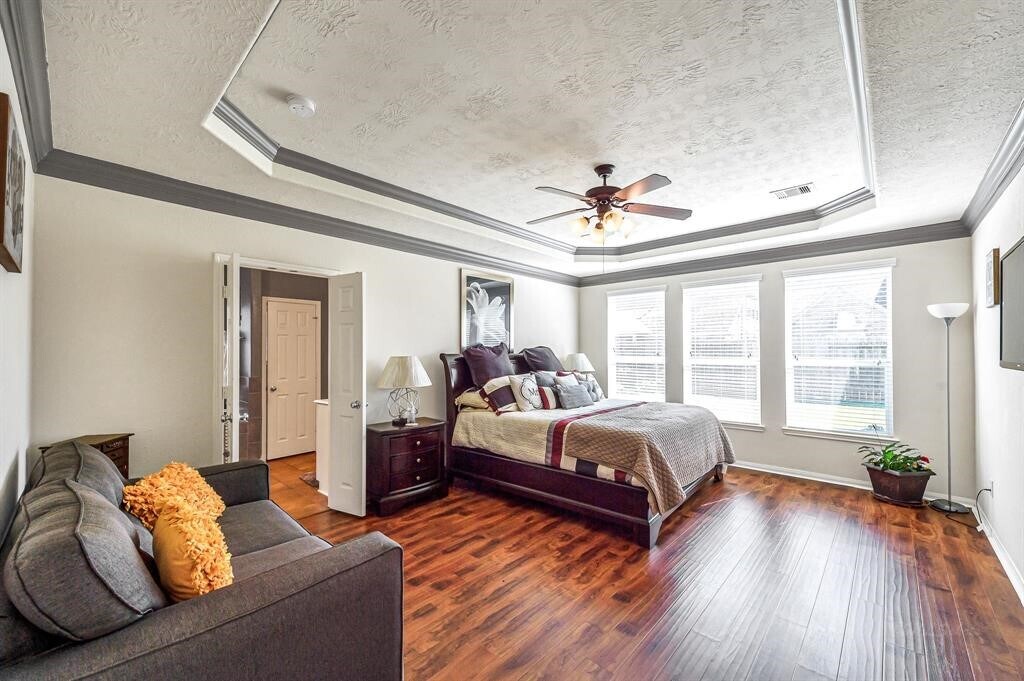 Welcome HOME! This beauty is PART OF THE MASTER-PLANNED LAKEMONT SUBDV. 5 OR 6 BDRMS/ 4 FULL BATHS/ 3 CAR-GAR.LOADED WITH STONE DESIGN,WOOD FLOORS,GRANITE,GOURMET KITCHEN,ACCENTED FLOOR-TILES AND BACKSPLASH,RAISED CEILINGS WITH DOUBLE CROWN MOLDINGS,CHAIR-RAILS,ARCHES WITH ROUNDED CORNERS,WHOLE-HOUSE WATER TREATMENT EQUIPMENT,STAINLESS STEEL APPLIANCES,Sprinkler system,Security system,prewired for Surround sounds. This location with easy access to West Park Toll Road & Grand Parkway SH-99 makes it an ideal place to live in a park like setting neighborhood! Close to many shopping & dining. Too many details to mention. MLS# 95748342