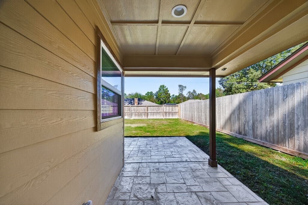 Tucked beneath the trees in New Caney’s Woodway Forest community,this property was recently completely renovated and feels like a brand-new home! Step inside and enjoy gorgeous luxury vinyl plank flooring throughout. The chef-ready kitchen features soft-close drawers,beautiful granite countertops,and stainless-steel appliances. The main house offers 3 bedrooms and 2 full bathrooms — but wait until you see the private guest quarters out back! This additional space has its own HVAC system,kitchenette area (just bring your electric range + refrigerator),and a full bathroom. The backyard is a dream; with a large,covered patio,a storage shed,and a long driveway that extends behind the gate so you can easily park trailers,toys,or recreational vehicles. Homes like this do not come along often! Schedule your private tour today,before this beauty is gone! Be sure to watch the virtual tour video to see footage of the guest quarters! Pictures coming soon. MLS# 14886621