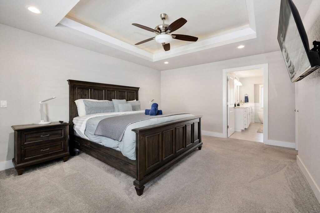 The advertised rate of $19,516/month is the lowest available price, based on a 30 day(s) stay with a move-in date of August 5, 2026. Rates vary depending on the duration of stay, season, and other parameters. For exact pricing and additional pricing components, please visit our website and enter your desired move-in and move-out dates. The rate is applicable when billed upfront; it can be higher if billed in multiple payments. Feel at home in The Almand House, a huge home in the center of Bentonville that can fit the whole family. Located along the Tristan and Action Alley MTB trail, this home is stocked with amenities bikers will love. This home features a decked-out patio with a dining table, grill, smart TV, fireplace, and cozy seating. The epic game room includes a poker table, pool table, board games, and a Hunter Arcade Game. The large, open-concept living room has a smart TV, seating, and a fireplace. There are two dining spaces to fit the whole family. The modern, fully stocked kitchen has the essentials you'll need to create your favorite meals. A washer and dryer are available for guest use. Two Pack 'n Plays and two highchairs are available. Secure bike storage is available in the garage. This property is pet-friendly with a fee of $90 per dog, with a maximum of 3. Ride or drive just 3 miles to Downtown Bentonville for Northwest Arkansas favorites. This home is 0.7 miles to Bentonville Bike Playground, 3 miles to Downtown Bentonville & Crystal Bridges, and 4 miles to The Momentary & 8th Street Market. It's a 2-mile ride via Tristan MTB trail to the Slaughter Pen Hollow trailhead. Bentonville is home to Northwest Arkansas' premier mountain bike trails, restaurants, and museums. Walk, drive, or easily ride your bike to access all the amenities downtown Bentonville has to offer. Parties or guest actions that result in disturbances, property damage, extensive extra cleaning, or smoking indoors will incur a fine of $1,000. Dogs discovered at the property without prior notice or cats discovered at the property will incur a fine of $400. Unauthorized checkout delays will incur a fine of $100 per hour. If you smoke in the home, you will be fined $1,000 plus the cost of any smoke remediation necessary. Quiet hours are observed from 10:00 PM to 10:00 AM. Check-in is any time after 3:00 PM. [SI]