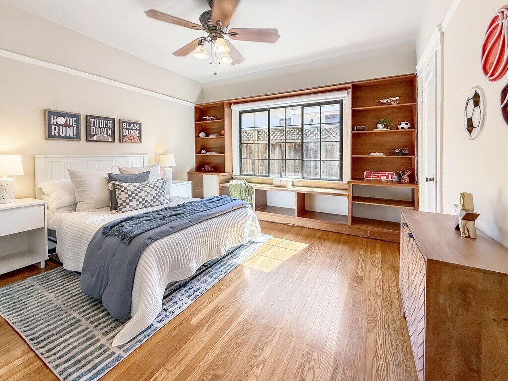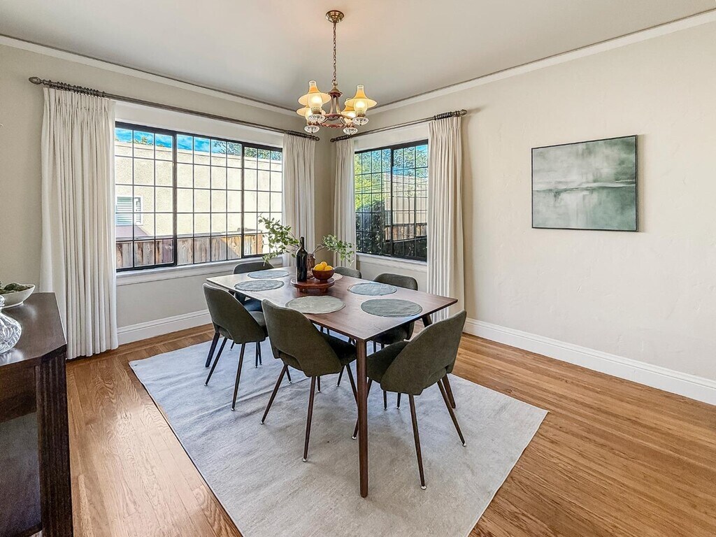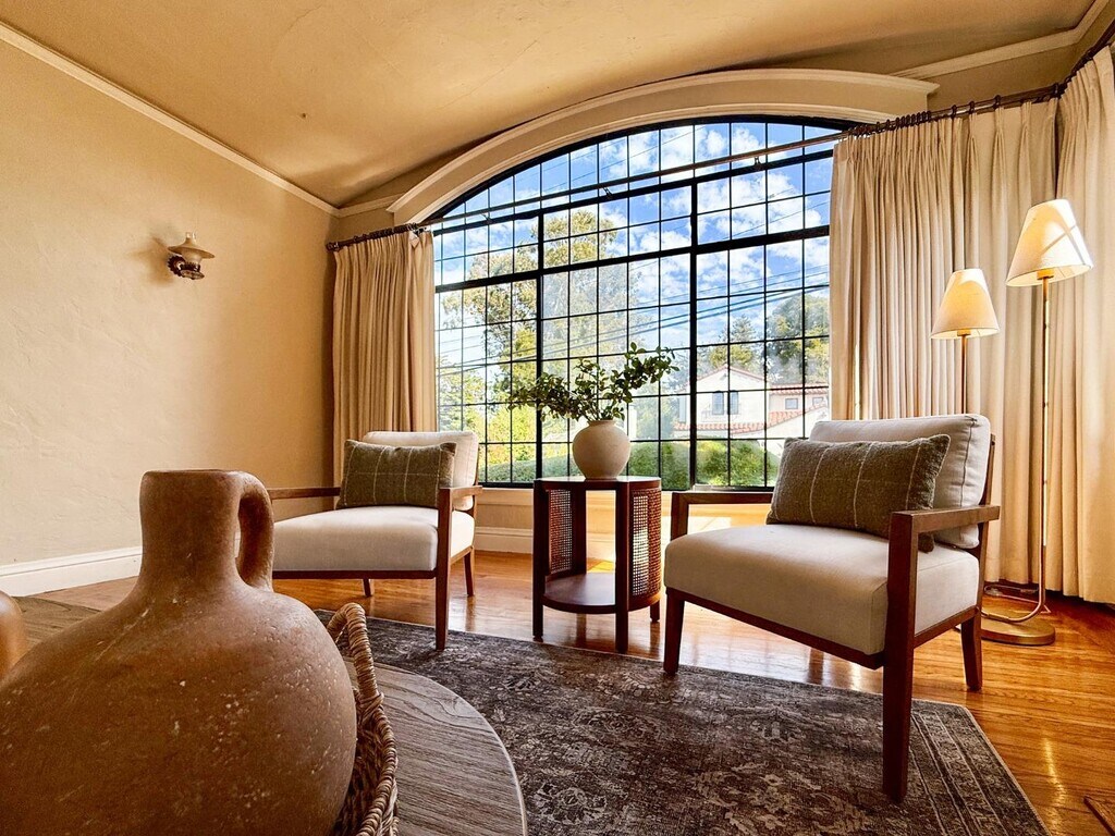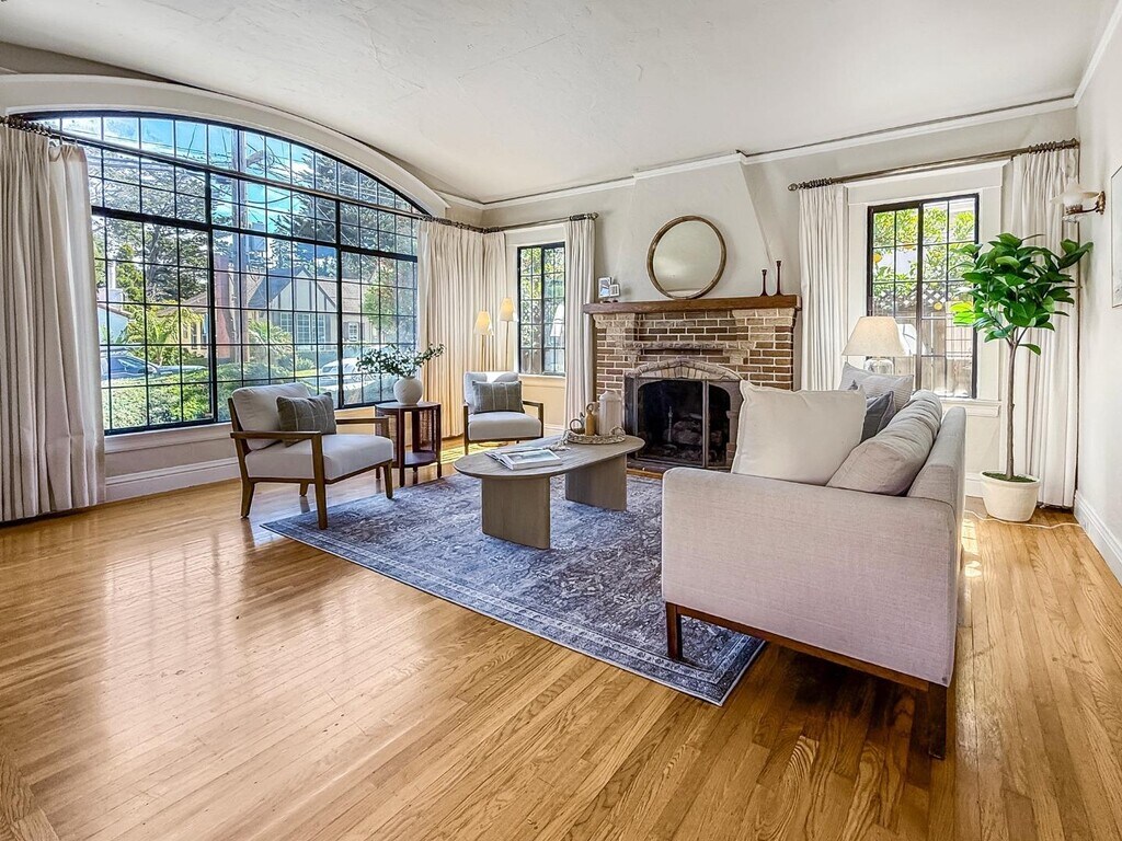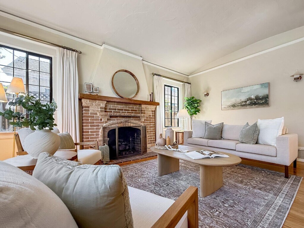 Welcome to 2104 Carmelita Avenue, a storybook Tudor nestled in coveted Easton Addition one of Burlingame's most picturesque and sought-after neighborhoods. This timeless 3-bedroom, 2-bath home offers approximately 1,670 square feet of elegant living space filled with natural light, character, and charm. Classic Tudor architecture meets modern comfort, with original period details, graceful archways, and beautiful hardwood floors that flow throughout. The bright, well-equipped kitchen features modern appliances and opens to a formal dining room perfect for gatherings. The spacious living room centers around a stunning fireplace, creating a warm and inviting atmosphere. Outside, a larger paver-stone driveway provides ample off-street parking, while the private rear garden and deck offer an ideal retreat for relaxing or entertaining. Additional highlights include a convenient laundry area with washer and dryer, detached one-car garage, and central heating for year-round comfort. Located within the highly rated Burlingame Elementary District and served by Burlingame High School, one of the Peninsulas top-performing schools, this exceptional home combines historic elegance with everyday livability all just minutes from downtown Burlingame charming shops, parks, and commuter routes.