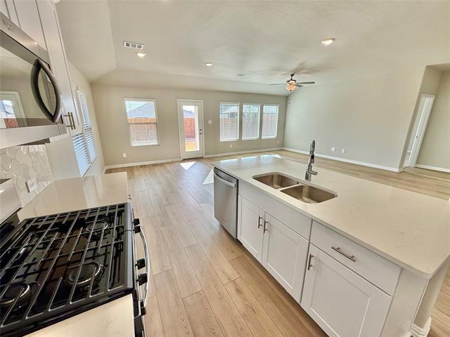 Exquisite New Construction in Prestigious HOA Community!! Experience refined living in this brand-new 4-bedroom, 3-bath residence, thoughtfully designed with upscale finishes and a sophisticated, modern aesthetic. Nestled within a desirable HOA community, this home offers an exceptional blend of elegance, comfort, and functionality. Soaring high ceilings and recessed lighting enhance the expansive open-concept living, dining, and kitchen areas, creating a seamless space ideal for both entertaining and everyday luxury. The designer kitchen showcases granite countertops, a striking tiled backsplash, and a full suite of premium appliances, including washer and dryer. Two bedrooms feature private ensuite baths, including a serene primary retreat complete with a spacious walk-in closet, double vanity, and an oversized walk-in shower. Bedrooms are appointed with plush carpeting, while the neutral interior palette provides a timeless, upscale ambiance. Step outside to a covered back patio overlooking a privacy-fenced backyard, perfect for relaxing or hosting intimate gatherings. Additional highlights include a two-car garage and impeccable modern detailing throughout. This move-in-ready home offers elevated living at its finest—where luxury meets thoughtful design.