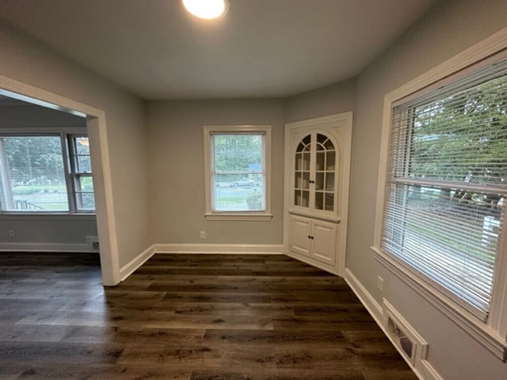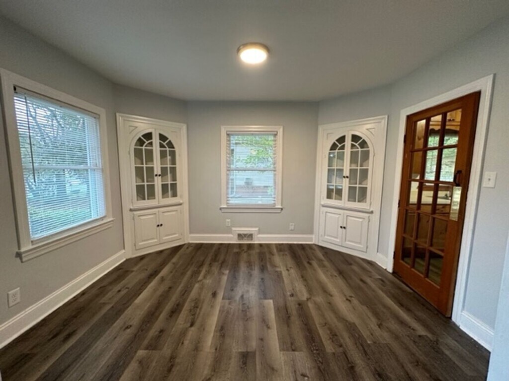 Nice 3-bedroom 1 bath house located in Burlington for rent exclusively through Burlington Rentals. Spacious living room with gas log fireplace which opens to a dining room with built-in corner cabinets. Kitchen has dining booth, refrigerator, electric range and washer/dryer hook-ups. LVP flooring throughout except in the bedrooms. Large back yard with porch, paver patio and storage building. Gas heat, central air and city water/sewer/trash. Call Burlington Rentals to schedule a viewing of this property.