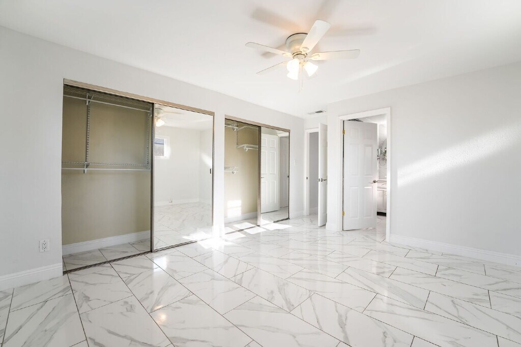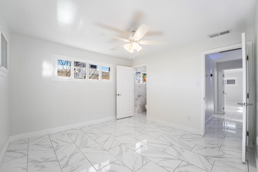 Charming Fully Renovated Home for Rent – 2104 Santa Rita Drive, Las Vegas, NV 89104 This beautifully updated single-story home features 3 bedrooms, 2 modern bathrooms, and a private office, ideally located just minutes from the Las Vegas Strip and very close to The Strat Hotel. The open floor plan is filled with natural light and showcases a stylish kitchen with laminated countertops, updated cabinetry, and contemporary finishes throughout. The interior has been freshly designed with all-white paint and modern white lighting fixtures, creating a bright, clean, and elegant atmosphere. Situated on a generous 0.14-acre lot with no HOA, the property offers exceptional privacy and security with an electric fence. The spacious carport accommodates up to six vehicles, providing excellent convenience for residents and guests. The expansive backyard is designed for easy living and entertainment, featuring artificial grass for year-round greenery, additional storage sheds, and plenty of outdoor space. Energy-efficient solar panels help reduce utility costs, making this home both economical and eco-friendly. Move-in ready and close to shopping, dining, and entertainment, this home delivers comfort, functionality, and modern living in a prime Las Vegas location. Don’t miss this outstanding rental opportunity! Tenants are responsible for all utilities (Water, Sewer, Trash, Gas, Power) *Non-refundable One Time Fees** Application $100 per adult. If approved, Key $150, Cleaning $375, Administration Fee $150. Other monthly charges if applicable: Pet Rent $35 per pet. Pets to be registered with - No exceptions. Applicants must have 620+ credit score, 3X verifiable income. If self-employed, must show last 2 years tax returns. Renters Insurance REQUIRED. Apply at .