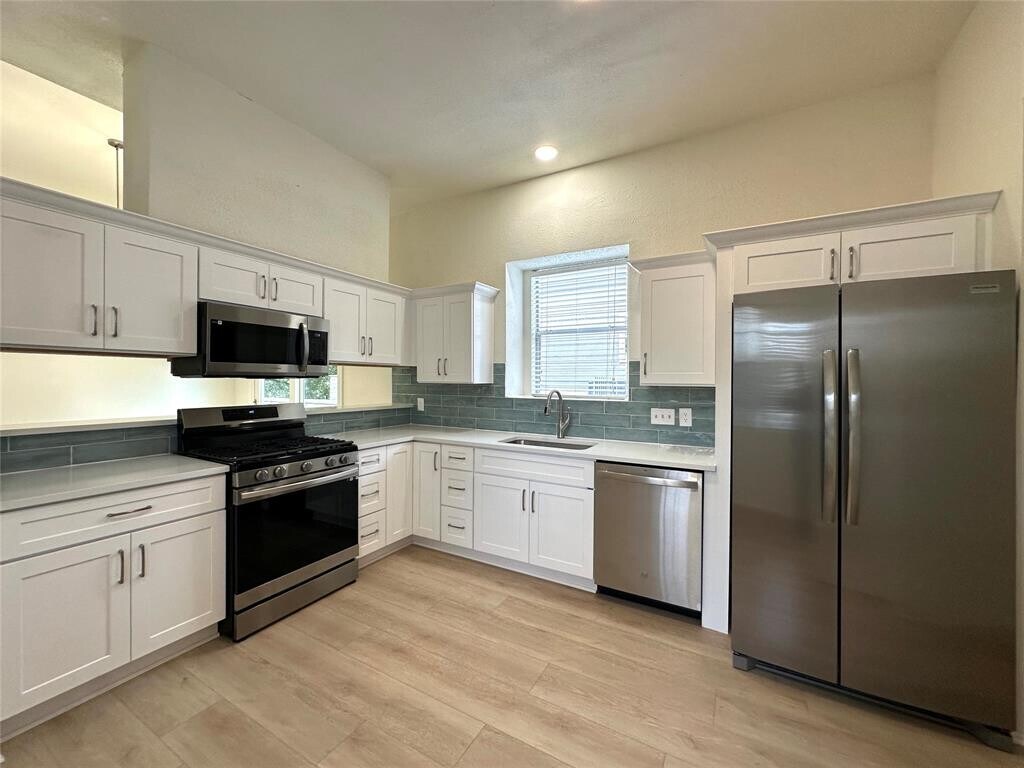 This beautiful single-story home for rent with great curb appeal is located in the Wells Branch neighborhood of North Austin. It backs up to the park, hiking, and biking trails. The community has tennis and basketball courts, a pool, and a playground etc. The location is near many employers, supermarkets, and restaurants, and has easy access to both Loop 1 and HWY 35. The home is a 3 bedrooms and 2 bathrooms with a single story, built in 1984, approximately 1450 sqft living space, and an open floor plan with contemporary wood-like luxury vinyl plank flooring and tile flooring for easy cleaning and maintenance. A huge living room connected to the open kitchen features modern colored backsplash tiles, stainless steel appliances, including a refrigerator, stove, and dishwasher, and many cabinets for storage. The master bedroom features a walk-in closet, a master bath equipped with a dual-sink vanity, two independent mirrors, and a walk-in shower with hand bars. The other two bedrooms are conveniently located aside from the master bedroom and a full-size guest bathroom. A beautiful back porch overlooks the greenbelt, and a door in the backyard provides access to the trails. One pet under 50lbs may be considered, subject to the owner's approval and additional fees. Smoking inside the premises is prohibited. FEMA - Unknown