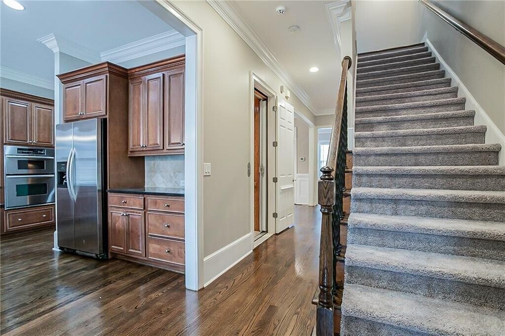 Smyrna/Vinings executive townhome in sought after gated community - One Ivy Walk! John Wieland Homes most impressive city development offers a lifestyle of utmost convenience right outside the perimeter at the corner of Cumberland Parkway and Atlanta Road. Well-built and maintained,this spacious home is turn key and features beautiful hardwood floors with private elevator to all 4 levels. The entry level,with garage access,welcomes you with an expansive bedroom and full bathroom,perfect for a private guest retreat or a quiet home office. The second floor features the kitchen with granite countertops,stainless steel appliances and a butler station adds an extra touch of elegance. The dining room,completed with coffered ceilings,is designed to host gatherings of 12 or more while the adjoining family room features a cozy fireplace,built-in cabinets with bookcase and access to your private outdoor entertaining area. The third floor unveils an oversized primary suite,boasting a spa-like bathroom with separate vanities,a large soaking whirlpool tub,and a separate shower. A separate laundry room,sizable linen closet,and an en suite bedroom complete this level. On the fourth level,you will find the perfect teen or in-law suite. The space can be a bedroom with a full living space,a game room,a workout room,a media room,or all of the above and so much more. Architectural enhancements like oversized doors,crown moldings,tray ceilings,and built-in bookshelves elevate the aesthetic appeal of this home. Enjoy the perfect blend of city convenience and experience community living at its finest with amenities including a pool,gym,private clubhouse and dedicated dog park.