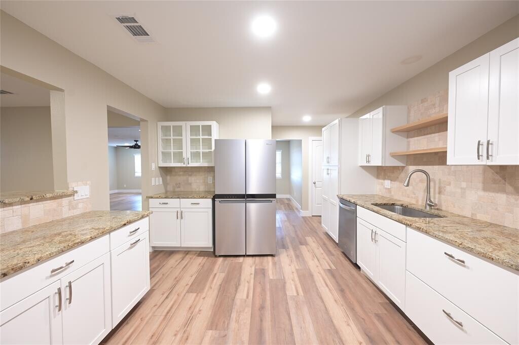 Beautifully remodeled 3126+ sf home on 1.5+ acres. Ideally located off 183 in downtown Lockhart with easy access to 130 - less than 30 minutes to downtown Austin! BONUS: includes a covered shed that can be used for RV/BOAT/ADDITIONAL PARKING OR WORKSHOP. Inside the home, virtually everything was replaced in 2022! In-law plan with 4 bedrooms, 2.5 baths, 3 bedrooms on main level. The 4th bedroom is an attached garage apartment that could serve as an office/bonus room. It has a mini-split system for cooling/heating. It's carpeted with a closet. The kitchen has beautiful stainless appliances including counter-depth refrigerator, plentiful soft-close cabinets, granite counters and two pantries. The kitchen opens to the dining room by way of the granite breakfast bar. The home's windows were replaced in 2022 as well as the interior sheetrock. The flooring is QLV (quality luxury vinyl wood plank) throughout. There are two huge living areas, one with built-in shelving and the other with a wood burning fireplace. The HVACS were also replaced in '22. Both water heaters and the roof was also replaced at that time. There is some newer fencing to provide privacy out the back door. There are 2 fenced areas, one large one immediately behind the home and the other is the massive northern side yard. Overall there is a vast amount of outdoor space. The lot backs to 20+/- acres of ag exempt land so you're guaranteed peace and privacy. Enjoy the easy, eclectic Lockhart-lifestyle and quick access to Austin in this like-new rental! MLS ID 9495770