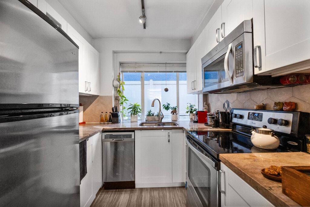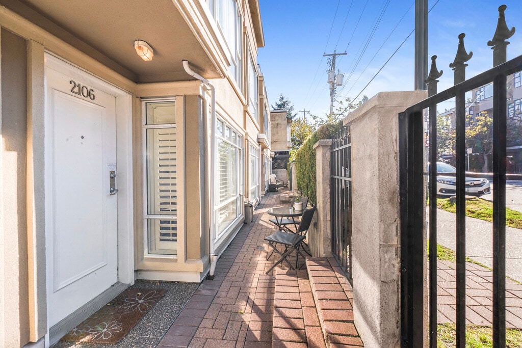 Bright & Renovated 2-Bed, 2-Bath Townhouse in Prime Kitsilano Welcome to this gorgeous two-level townhouse ideally located in the heart of Kitsilano at 2106 Yew Street. Offering approximately 787 sq ft of thoughtfully designed living space, this home perfectly blends comfort, style, and convenience in one of Vancouver’s most sought-after neighborhoods. Built in 1999 as part of a boutique townhouse complex, this residence has been tastefully updated in recent years, with renovated kitchens, bathrooms, and flooring, giving it a fresh, modern feel while maintaining its classic Kits charm. The main floor features a bright kitchen, a cozy dining area, and a spacious living room with a gas fireplace — ideal for relaxing or entertaining. A full bathroom and a west-facing front patio add functionality and warmth, making it the perfect spot to enjoy your morning coffee or unwind in the evening. Upstairs, the oversized primary bedroom offers ample closet space, while the second bedroom includes a walk-in closet and a private deck — perfect for fresh air and quiet moments. This home also includes one secured underground parking stall and a storage locker, providing both convenience and peace of mind. Details: Monthly Rent: $3,980 Area: Kitsilano Type: Townhouse Floor area: 787 sqft Bedroom: 2 Bathroom: 2 Parking: 1 Storage Locker: 1 (EV-Ready) Laundry: In Suite Unfurnished Gas & Hot Water Included Location Highlights: Just steps from vibrant shops, cafés, and restaurants along West 4th Avenue Only minutes to Kitsilano Beach, the seawall, and waterfront parks Easy access to public transit, UBC, and downtown Vancouver Nestled in a highly walkable and bike-friendly community Surrounded by Kitsilano’s signature blend of urban energy and relaxed coastal charm To schedule a viewing, please provide: Brief introduction (job & finances) Number of occupants Reason for relocation Preferred move-in date Preferred viewing time Contact number Rental Terms: Available: December 1, 2025 Minimum 1-year lease Background, credit & reference check required Tenant insurance required No smoking / subletting / Airbnb Managed by: Nader Rafii | Oakwyn Realty Ltd