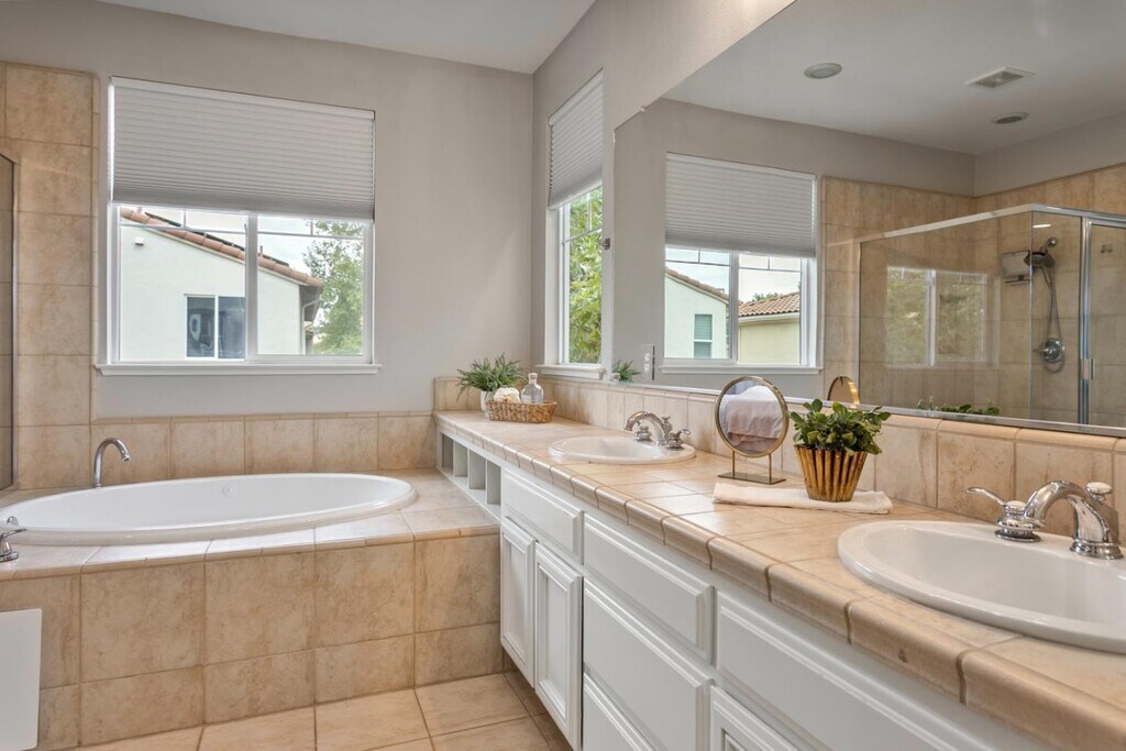 Welcome to your private, high-tech oasis behind the gates of the prestigious Eagle Ridge community! This modern, fully updated home blends luxury living with smart technology. Step into a lifestyle where golf, pickleball, tennis, bocce, concerts in the park, and exclusive HOA amenities are just outside your door. Resort backyard: Saltwater pool & spa with lighting + waterfall, all phone-controlled Energy savings: Paid-off solar, 2 Tesla Powerwalls, brand-new HVAC & furnace, smart thermostat utility bills under $100/month Chefs kitchen: Updated cabinetry, smart Samsung fridge, and newer laminate flooring with fresh paint throughout Outdoor living: Landscaped backyard with automatic irrigation + turf side yard and private gate to Club Drive, steps from the 11th hole Upstairs retreat: Spacious loft living room (flexible as 5th bedroom), upstairs laundry, and quiet balcony for morning sun Luxurious primary suite: Jetted soaking tub, custom California Closet, and smart fan/lighting Guest comfort: Two bedrooms with custom closets + beautifully updated shared bath Courtyard lifestyle: Nestled in a private cul-de-sac with HOA-maintained landscaping, a private park, and a warm neighborhood community that celebrates together