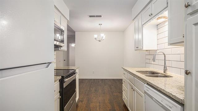 Cul de sac property! Gorgeous half-duplex in one of the most desirable areas of Fort Worth! Updates include: granite countertops, subway tile backsplash and tub surround, appliances, fixtures, and much more throughout! Floor-to-ceiling brick fireplace. French doors leading to private backyard. Washer-dryer connections off of kitchen. 2-car garage. Minutes from all Downtown Fort Worth has to offer!