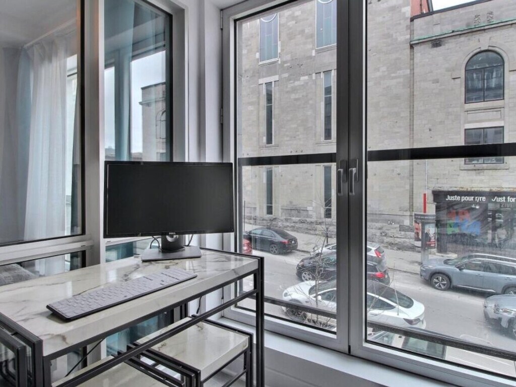 The advertised rate of C$2,292/month is the lowest available price, based on a 1 month(s) stay with a move-in date of April 4, 2026. Rates vary depending on the duration of stay, season, and other parameters. For exact pricing and additional pricing components, please visit our website and enter your desired move-in and move-out dates. The rate is applicable when billed upfront; it can be higher if billed in multiple payments. Feel at home in this stylish studio condo in Montreal's vibrant Quartier des Spectacles. This modern apartment is located at the iconic intersection of Boulevard St. Laurent & Sherbrooke Street and is accessible by elevator. This cozy and well-appointed studio features modern finishes and everything you need for a seamless, relaxing stay, including a private bathroom. Additional amenities include a gym and a rooftop terrace. Indoor parking with in/out privileges is available for an additional fee, subject to availability. Cleaning services are available bi-weekly or monthly for an extra charge; please inquire for more information. Ideally situated at the crossroads of Boulevard St. Laurent and Sherbrooke Street, this apartment offers easy access to Montreal's attractions. The Saint-Laurent metro station is just steps away, and several bus lines run along St. Laurent and Sherbrooke. A Bixi bike share station is nearby, and McGill University, Mount Royal Park, Place des Arts, and Quartier Latin are all within walking distance. No parties or loud noises that can disturb other residents are allowed. Smoking (including cannabis/cigarettes) is prohibited inside the apartment, on the balcony, or in the building. Includes [SI]