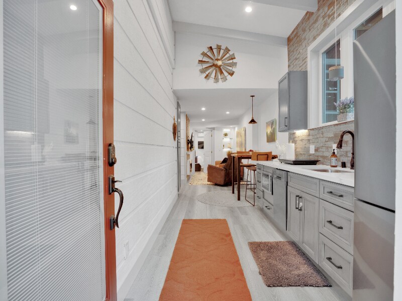 Property Id: 1578445 Custom built apartment with all newer high-end furnishings and custom art, king size bed, adjustable shower head over tub, private washer and dryer, induction cooktop, convection microwave oven, dishwasher and full-size fridge. Full set of dishes, cookware and small appliances, including toaster, air fryer, blender, air fryer and coffee maker. All with roomy pantry. Private setting with beautiful fireplace, electric adjustable recliner. Rent includes linen and towel service and all paper products, i.e., toilet paper, paper towel facial tissue. Bedroom has black-out coverings, large custom closets. Rooms have individual climate controls for individual comfort. Additional soundproofing for your privacy. Space is built energy efficient utilizing solar power. Enjoy the luxury of clean sheets and towels, soft lighting with a relaxing space to recharge, relax, cook or entertain!