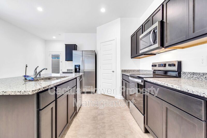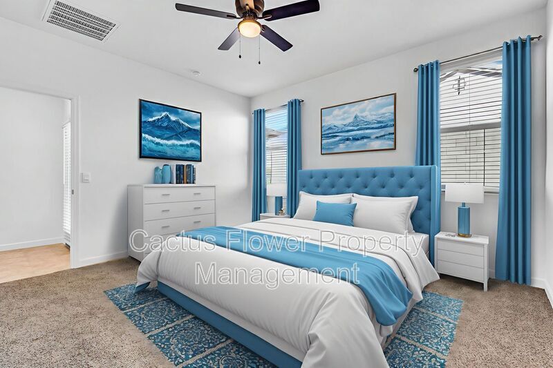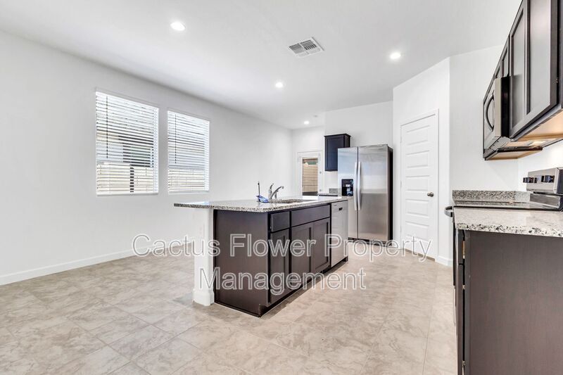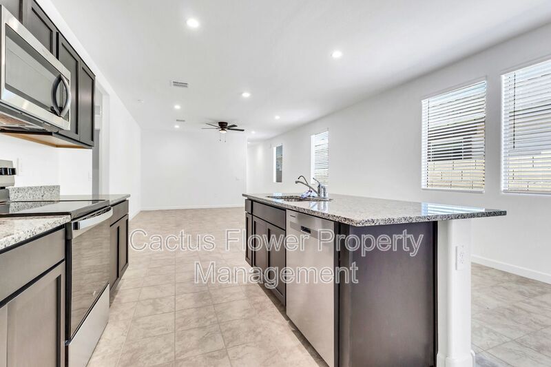 Experience resort-style living with access to a modern clubhouse, sparkling swimming pool, complimentary fitness center with premium equipment, pickleball courts, scenic walking trails, neighborhood parks, and playgrounds—all set against the breathtaking backdrop of the Superstition Mountains. Ideally situated near Eastmark and only 15 minutes from Chandler and Queen Creek, this 2024-built single-story home offers quick access to the 24, 202, and US 60 freeways, making it the perfect combination of comfort and convenience. This thoughtfully designed 3-bedroom, 2-bathroom residence features a split floor plan, 2-car garage, tile flooring in main living spaces, and plush carpet in bedrooms. The open-concept layout is enhanced by soaring 9-foot ceilings, abundant natural light, and ceiling fans throughout. The chef’s kitchen boasts granite countertops, stainless steel appliances, a generous center island, and a spacious walk-in pantry. The primary suite offers dual sinks, ample storage, and a relaxing retreat. Step into a low-maintenance backyard complete with an extended patio and artificial turf—ideal for entertaining or unwinding. Washer and dryer are included for your convenience. Don’t miss your chance to see this gorgeous home—schedule a tour today!