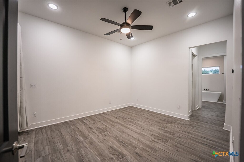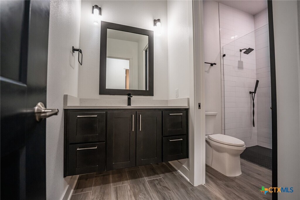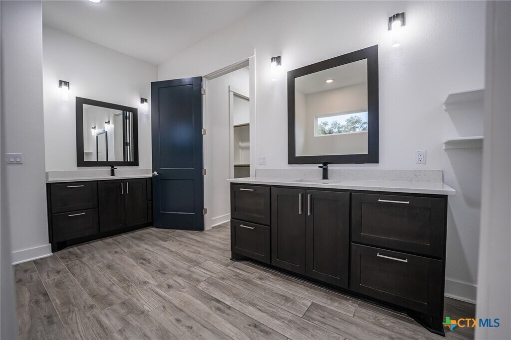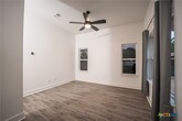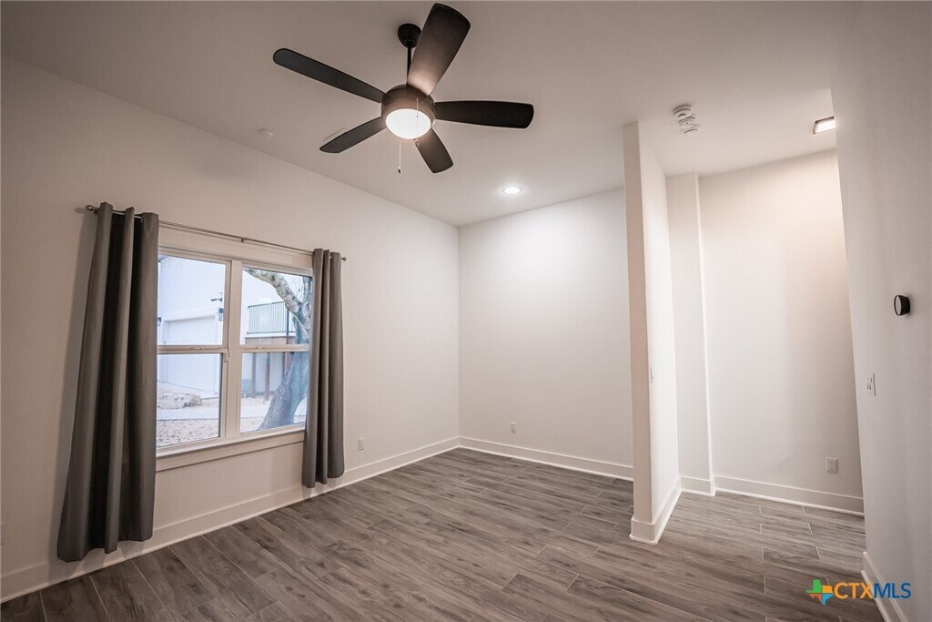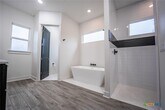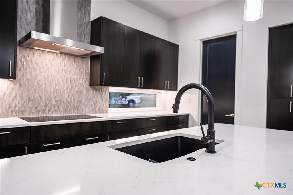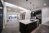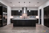 A modern masterpiece nestled in the heart of Canyon Lake,Texas. This stunning three-bedroom,two-bath home,complete with a dedicated study,offers 2,350 square feet of impeccable design on just over half an acre. Step inside and experience sophisticated living at its finest. An open-concept layout invites you into the spacious living and dining areas,where a wall of windows fills the space with natural light. The dining room’s modern light fixture sets the perfect ambiance for intimate gatherings. The gourmet kitchen is a chef’s dream—featuring a massive island,white quartz countertops,and custom cabinetry. High-end stainless steel appliances,including dual ovens and a flush refrigerator,blend seamlessly into the sleek,modern design. Recessed lighting and black pendant lights add a bold,contemporary touch. Retreat to the luxurious master suite,where expansive windows offer serene views,and French doors lead to your own private,screened-in patio. A black drop-down fan and recessed lighting elevates the ambiance,while the walk-in closet provides ample storage. The master soaking room is pure indulgence,boasting dual vanities with quartz countertops,sleek black fixtures,and a deep soaking tub for ultimate relaxation. The walk-in shower,wrapped in floor-to-ceiling subway tile and bold black wave tile,adds a striking contrast. The additional bedrooms offer comfortable,modern living. Step outside to the oversized covered patio,complete with wood-plank ceilings,recessed lighting,and dual ceiling fans—a perfect setting for outdoor entertaining. Gather around the stone fire pit for cozy nights under the stars. For breathtaking panoramic views,head up to the rooftop balcony,where you can take in the stunning scenery of Canyon Lake. The detached oversized two-car garage offers ample space for vehicles and storage.