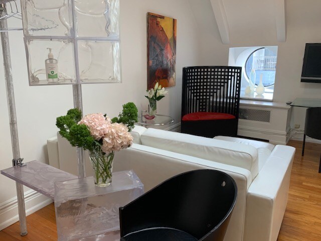 Available May 1. Often referred to as the historic Ansonia Hotel, this iconic building is in fact a beautifully managed condominium beloved by Upper West Side residents. This handsomely furnished penthouse apartment offers a peaceful, comfortable atmosphere filled with natural light. The bright one-bedroom layout features an en suite bath. Two oversized skylights, and four large portal windows keep the space sunlit-even on cloudy days. The décor blends whimsical charm with vintage elegance, creating a warm and stylish home. The queen-sized bed is of high quality with an excellent, comfortable mattress. The apartment comes fully furnished and thoughtfully accessorized for trouble free move-in. The recently renovated kitchen features brand-new appliances, white granite countertops, and a beautifully tiled backsplash-perfect for both everyday living and entertaining. Located on the penthouse level of the Ansonia Condominium, residents enjoy access to a landscaped rooftop terrace just one flight above the 17th floor. The roof deck is fully furnished and equipped with WiFi, offering a serene outdoor retreat with city views. On-site garage parking and bike storage are available for an additional fee. Sorry, no pets and no smoking. Showings by appointment only. Please call or email to schedule.