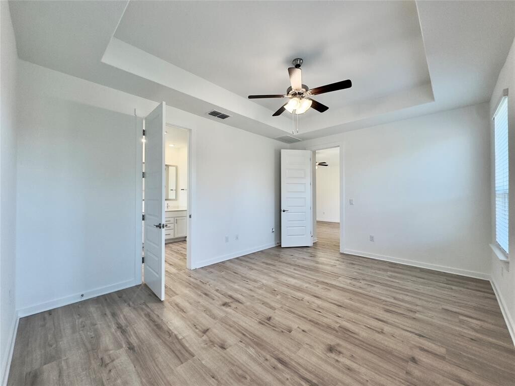 2024 modern design home ready for immediate move in today. Excellent location in award winning Bar W. Ranch Subdivision. Open & spacious, this entertainer's delight connects you with your environment via open bar top seating, views overlooking an open kitchen concept with extended covered back patio living and private backyard. Fourth bedroom is separated and front facing making an ideal home office if needed. BONUS: home comes with new refrigerator, garage door opener, washer & dryer. Tall ceilings, light and bright granite countertops, 42" tall upper cabinets, stainless steel appliances really make this model shine. Primary en-suite features a roomy bathroom with a double vanity and walk-in shower. Relax and enjoy the outdoors on the Texas sized back covered patio/porch. Pre-wired with smart home features: Video doorbell, Honeywell T6 Pro Z-Wave Thermostat, Qolsys IQ Panel, Amazon Echo Pop, Kwikset Home Connect 620, Deako Smart Switch. Conveniently located near the new HEB at Ronald Reagan and 183A Tollway for a quicker commute.