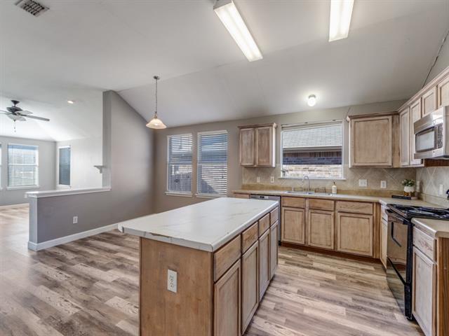 Updated and Ready for Move In! Fridge, Washer and Dryer included if needed. Lawncare Provided! ONE-STORY home in Anna with 3 Bedrooms + 2 Flex Spaces usable for formal living, office, workout area, playroom, etc. Luxury vinyl plank floors throughout the main living area and bedrooms. Open floorplan - see it uploaded in the pictures. Enter to an open flex space with large windows - perfect for a home office! Spacious kitchen with plenty of storage and island to use and gather around. Living room features a corner wood-burning fireplace. Large private primary bedroom at rear of home with ensuite bathroom and walk-in closet. Two secondary bedrooms are connected via a flex space that would work well as a playroom or secondary living area. The neighborhood offers residents a community pool, park, playground and catch and release pond. Located centrally with easy access to Highway 75, restaurants, shopping, and schools. UNIQUE FEATURE: landlord provides lawn service for the home, so no need to worry about mowing! BONUS: Fridge, Washer and Dryer included if needed.