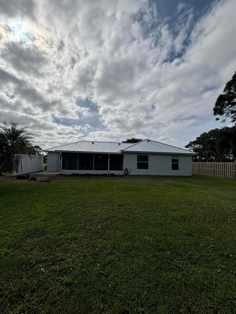 Step inside to find a bright and open layout featuring freshly painted interiors, a formal living and dining area, and a spacious family room perfect for relaxing or entertaining. The kitchen has been updated with brand-new stainless steel appliances, while both bathrooms include modern vanities for a fresh, clean look. Enjoy peace of mind with a new metal roof (2024) and a newer A/C system, ensuring comfort and efficiency year-round. Outside, you'll find a large yard with plenty of room to enjoy Florida's sunshine -- and best of all, no HOA, giving you flexibility and freedom. This home combines comfort, location, and value in one inviting package. Just a short drive from shopping, dining, and some of the area's best beaches -- this is a wonderful place to call home.