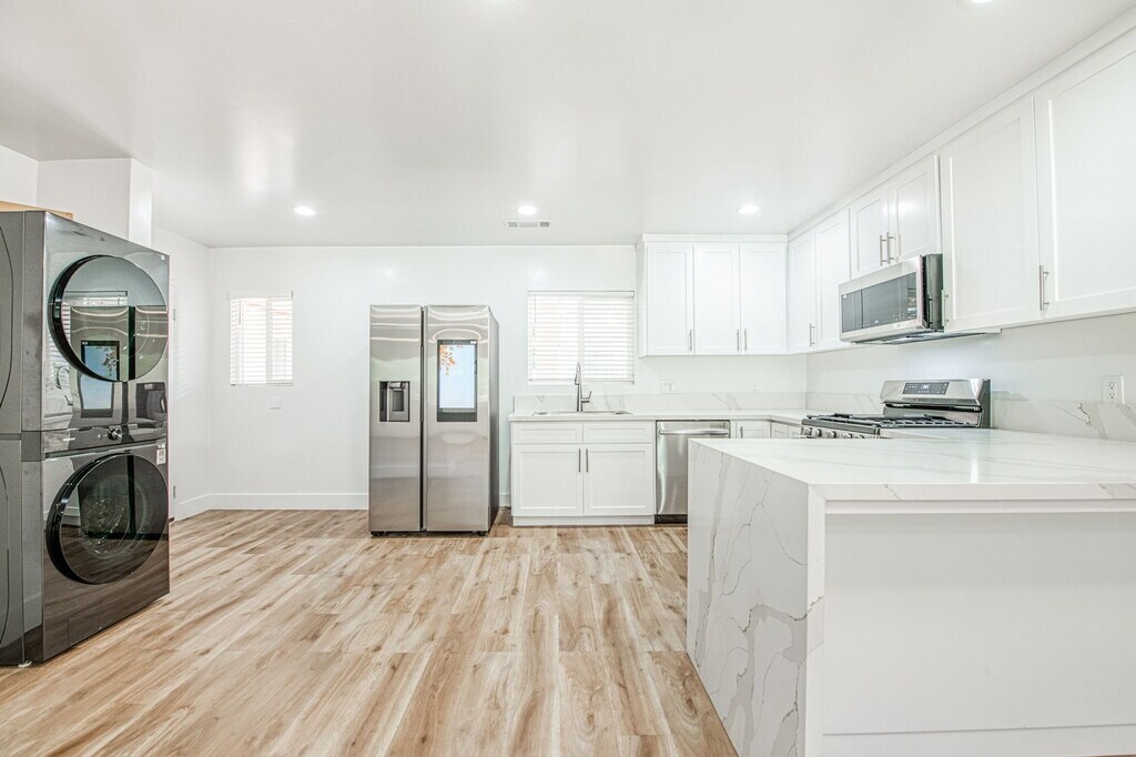 Welcome to your dream space in Selma! This stunning 1-bedroom unit has been fully updated with luxurious features that will make you never want to leave. Step into your brand-new kitchen, equipped with top-of-the-line appliances and a sleek Samsung Laundry Center. The custom-built cabinets with soft close technology and high-end Quartz countertops with a waterfall edge are sure to impress even the most discerning chef and guest. And say goodbye to constantly running out of hot water thanks to the tankless water heater. The luxury vinyl plank flooring adds a touch of elegance while being easy to maintain. The tiled walk-in shower is perfect for unwinding after a long day and the new dual pane windows allow natural light to flood in. But it's not just about looks, this home is also highly efficient with its central heating and AC system and fans in every room for added comfort. Plus, no need to worry about where you'll park as off-street parking is available. And if all that wasn't enough, each bedroom and family room come equipped with TV mounts so you can binge-watch your favorite shows without any hassle. Oh, did we mention the custom wall finishes and spacious closets too? Don't miss out on this opportunity to live in one of Selma's finest units! Contact us now before someone else snatches up this gem of a home.