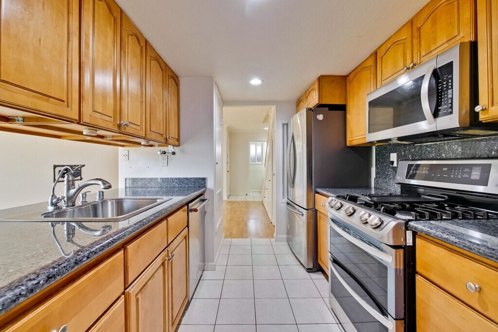 Amazing 2BR, 1.5BA home features ceiling fans, recessed lighting, and central heating and cooling. The kitchen includes a gas stove, granite counters, refrigerator, dishwasher, and disposal. Laminate floors, crown molding, dual pane windows, and in-unit washer and dryer add comfort and efficiency. Enjoy a fenced private yard, plus access to a clubhouse and pool. Trash service is included for easy living. Amazing Location close to DeAnza College as well as nearby Parks and Restaurants. Easy Commute to all Major Tech Companies. Contact us today! info@pms- - .