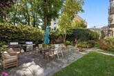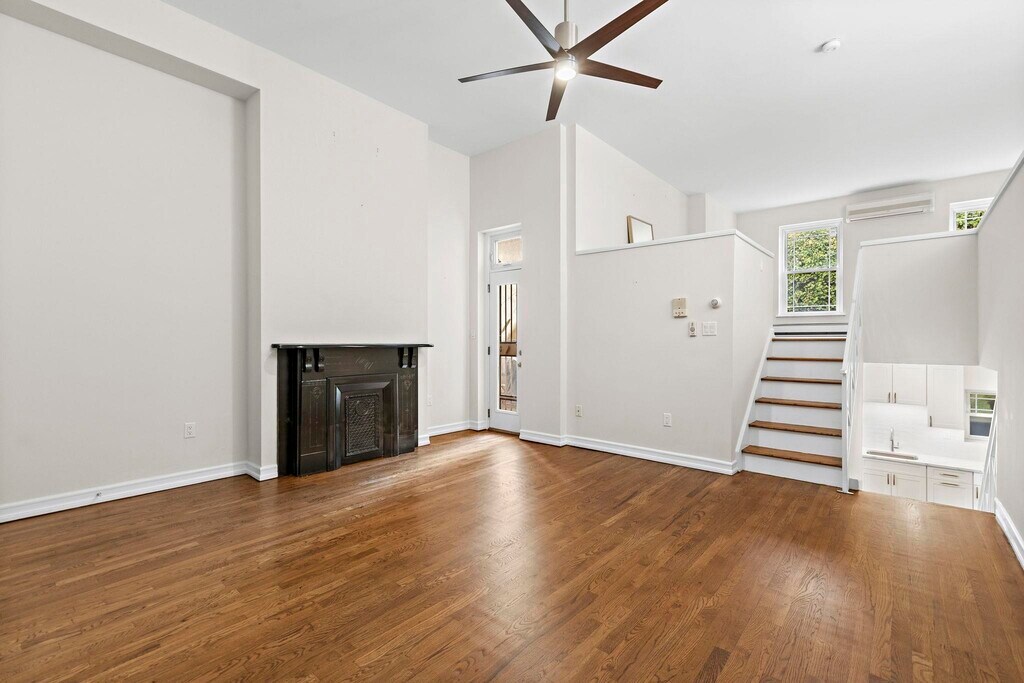 Discover this one-of-a-kind ground-floor condo in a beautifully preserved brownstone in the heart of Hoboken. This spacious one-bedroom plus loft, two-bath home features vaulted ceilings, newly refinished hardwood floors, and three original (sealed) fireplaces that add timeless character. The open loft provides a versatile second sleeping area, creative studio, or peaceful home office. Enjoy two private exits leading to a large shared backyard—perfect for relaxing or entertaining outdoors. Commuting is effortless with the NYC bus stop right outside, the ferry just a few blocks away, and nearby parking garages. Trader Joe’s, the Hoboken Farmers Market, cafes, and restaurants are all within easy reach.